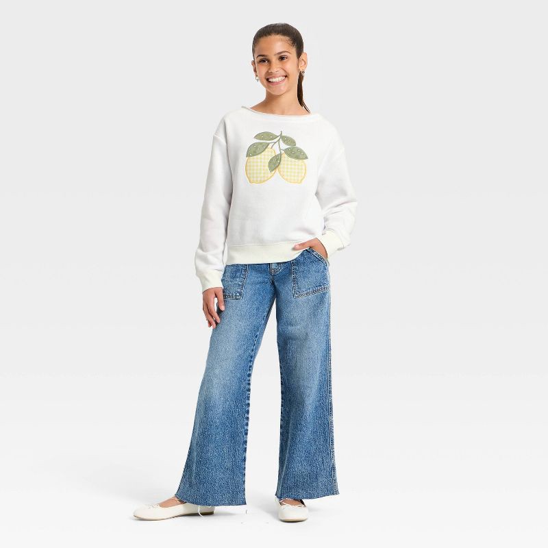 Level up their fashion game with this Off-the-Shoulder Graphic Sweatshirt from art class™. Made of cotton-recycled polyester blend fabric, this long-sleeve sweatshirt offers all-day snuggly comfort. I…