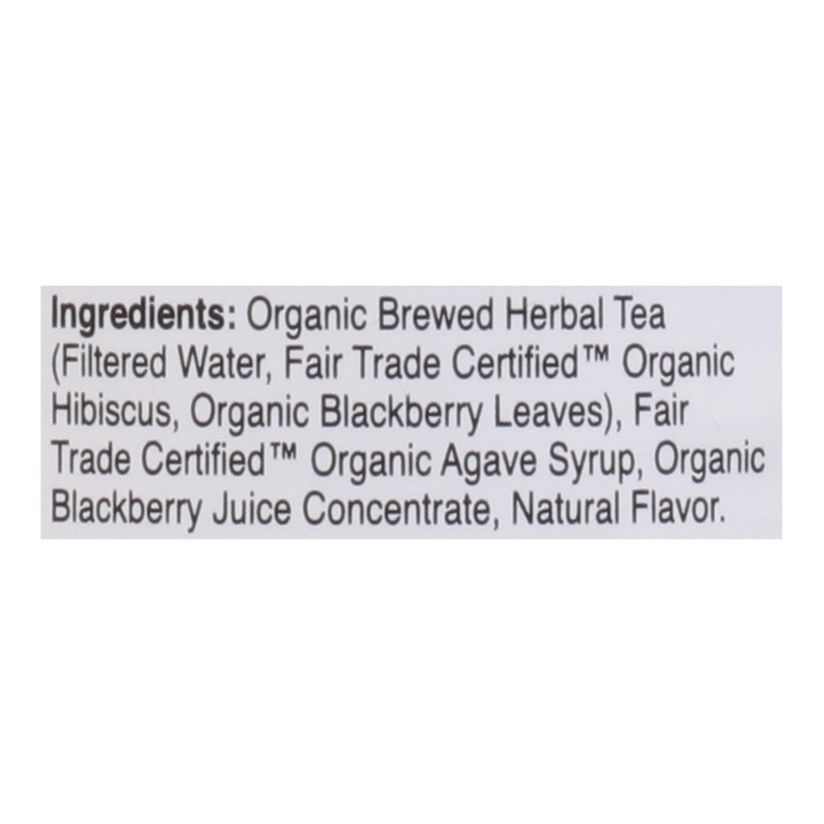 Organic Brewed Herbal Tea (Filtered Water, Fair Trade Certified Organic Hibiscus, Organic Blackberry Leaves), Fair Trade Certified Organic Agave Syrup, Organic Blackberry Juice Concentrate, Natural Fl…