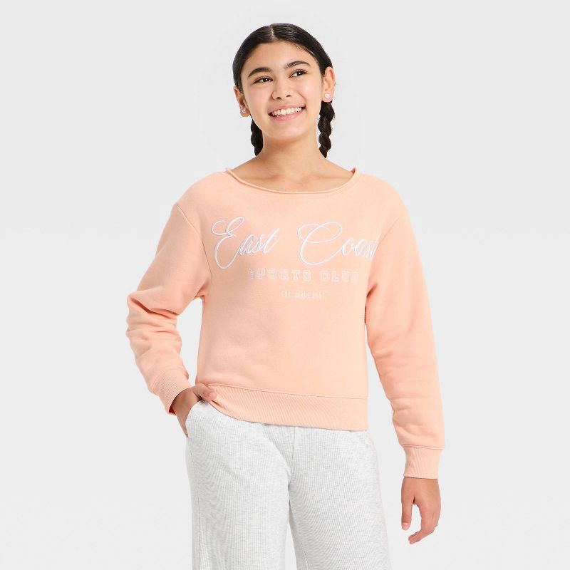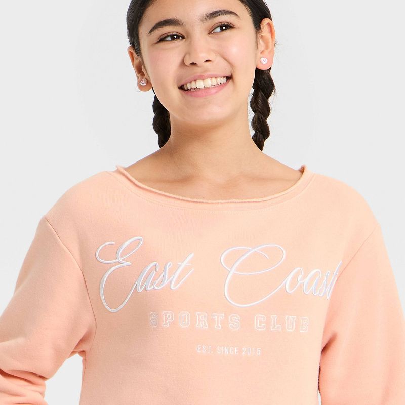 Level up their fashion game with this Off-the-Shoulder Graphic Sweatshirt from art class™. Made of cotton-recycled polyester blend fabric, this long-sleeve sweatshirt offers all-day snuggly comfort. I…