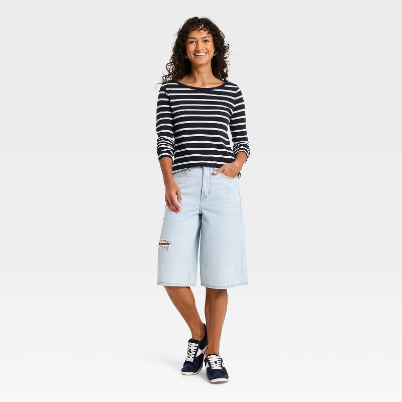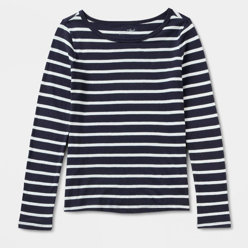 Women's Long Sleeve T-Shirt - Universal Thread™ Navy Blue Striped L