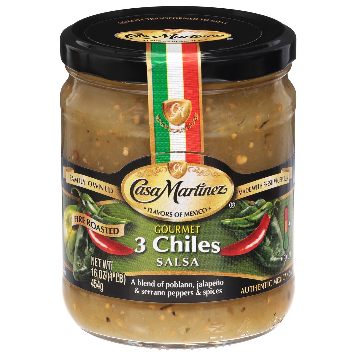 Casa Martinez Medium Fire Roasted Gourmet 3 Chiles Salsa 16 oz