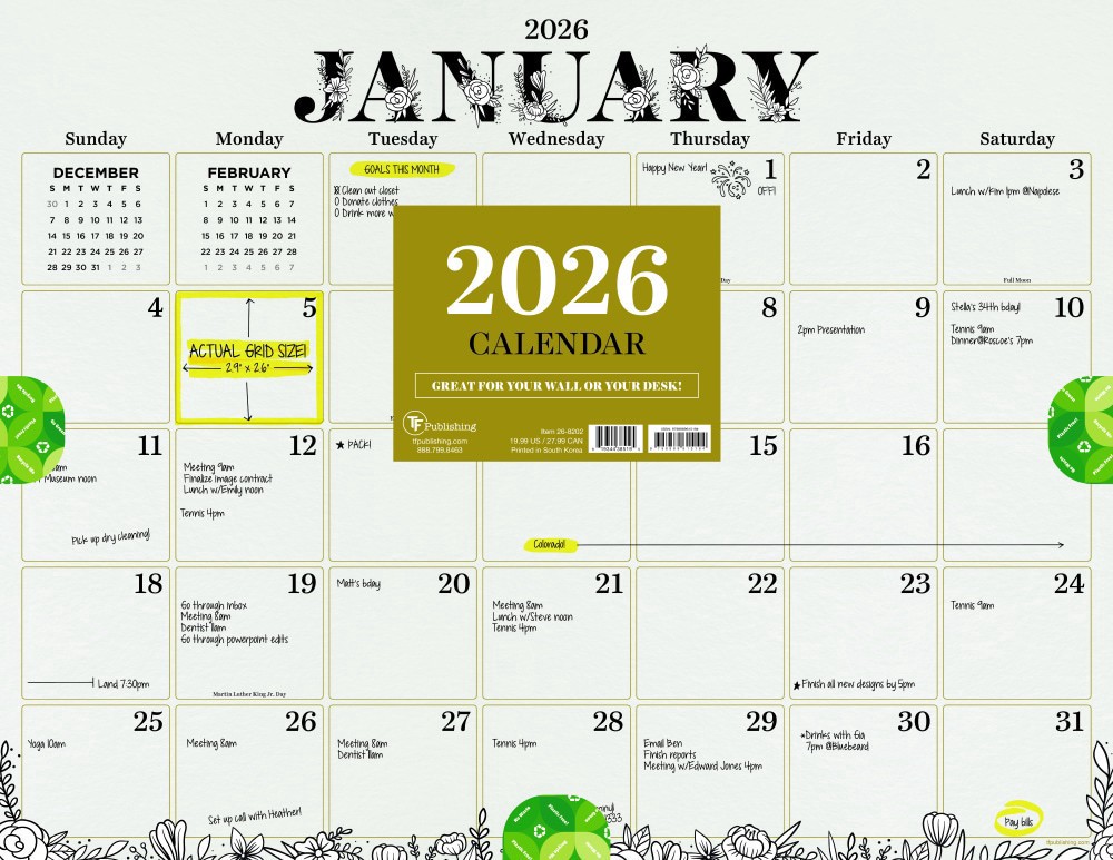 Remember to stop and smell the flowers with our 12-month large floral desk pad calendar! Monthly tear-off pages are accented with beautiful floral designs that are sure to brighten your day and large …