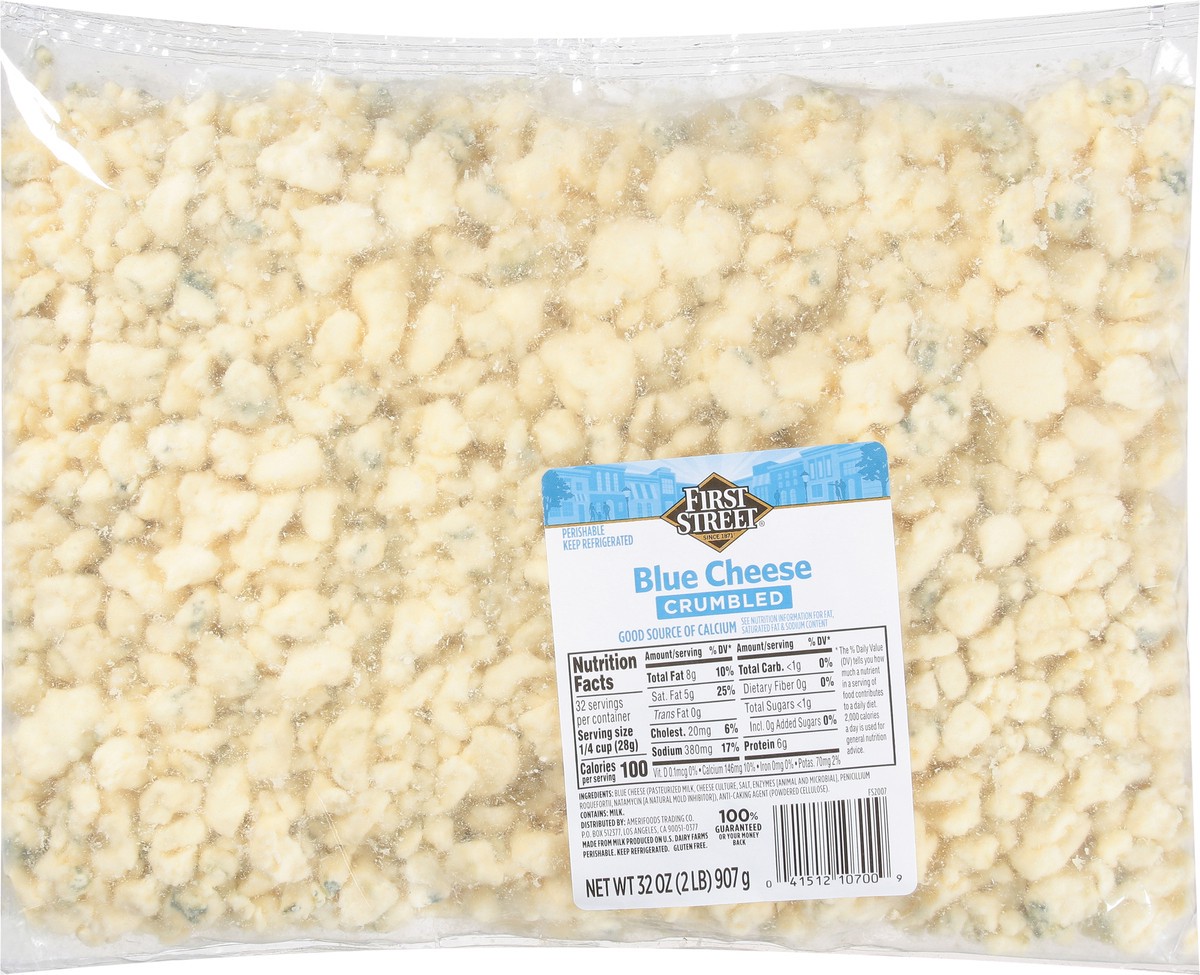 Blue Cheese (Pasteurized Milk, Cheese Culture, Salt, Enzymes (Animal and Microbial), Penicillium Roqueforti, Natamycin [a Natural Mold Inhibitor]), Anti-Caking Agent (Powdered Cellulose).