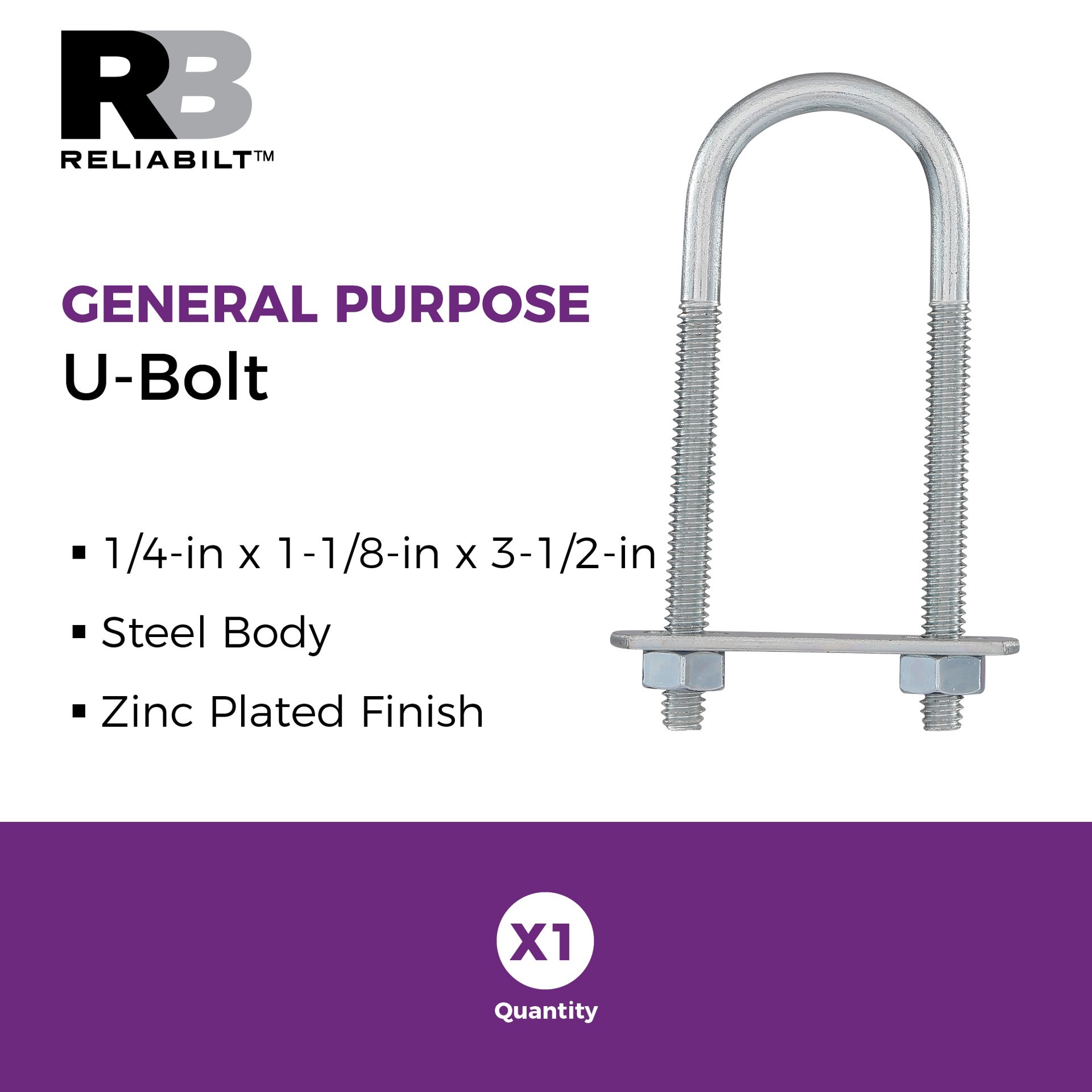 #136, 1/4-in x 1-1/8-in x 3-1/2-in U-Bolt is designed to support pipework, hold rope and chain and in automotive applications. Manufactured from steel wire for superior durability. Easily installs wit…