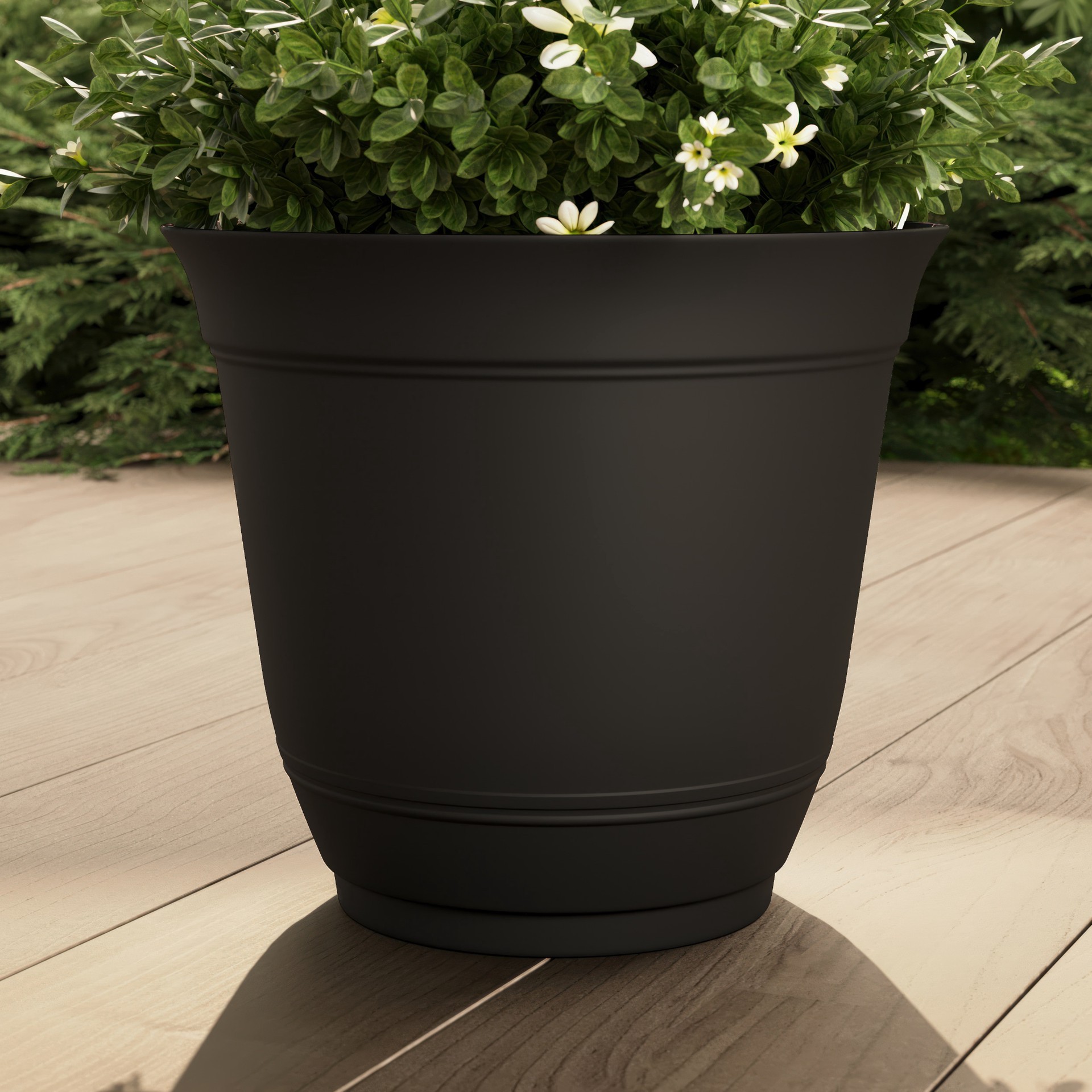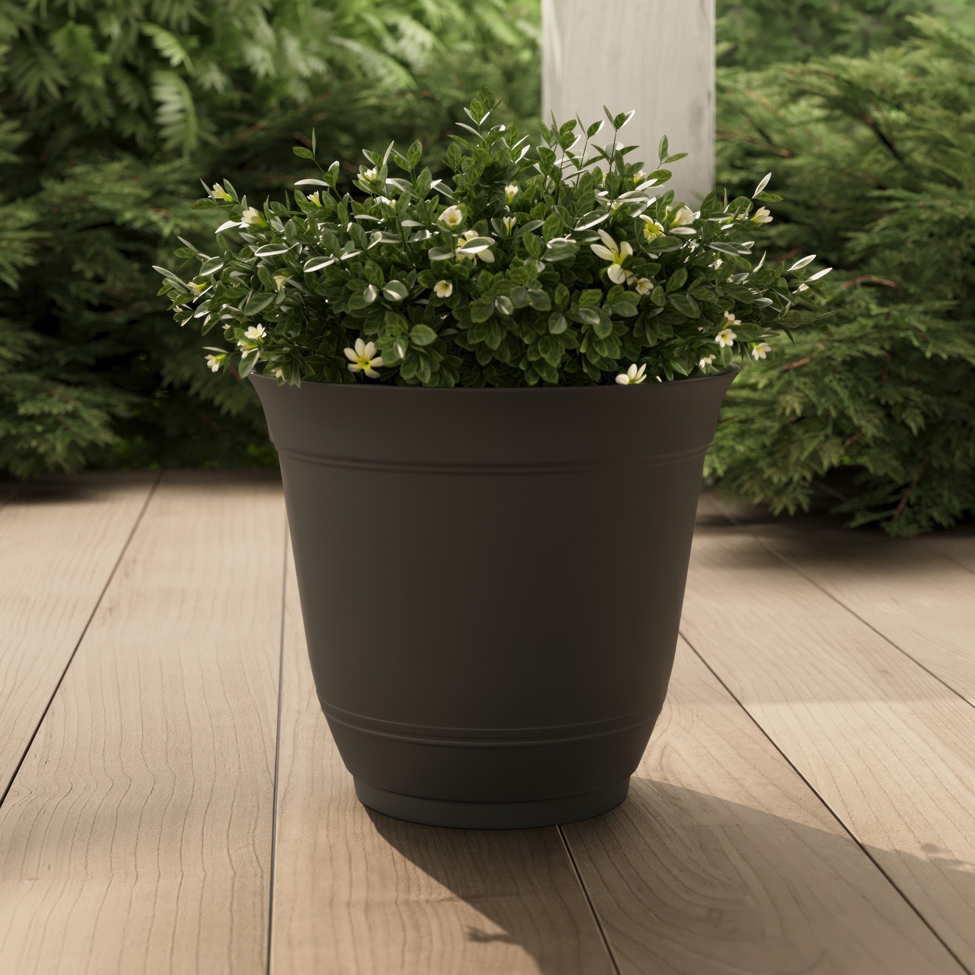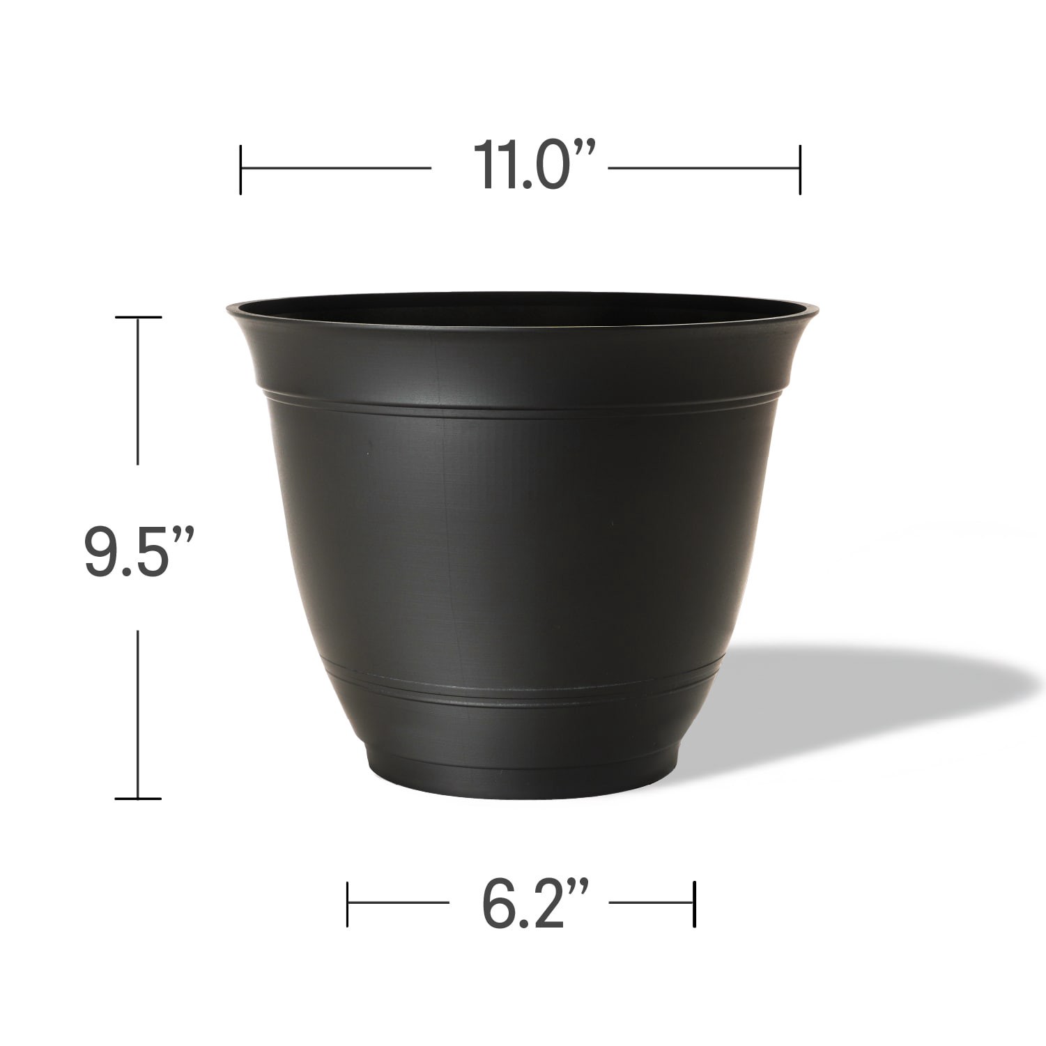 Style Selections Round 11.0-in W x 11.0-in L x 9.49-in H Black Recycled plastic Indoor/Outdoor Planter