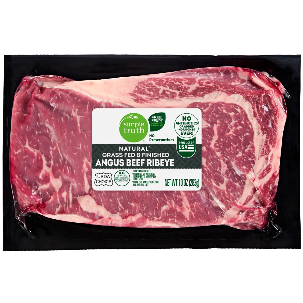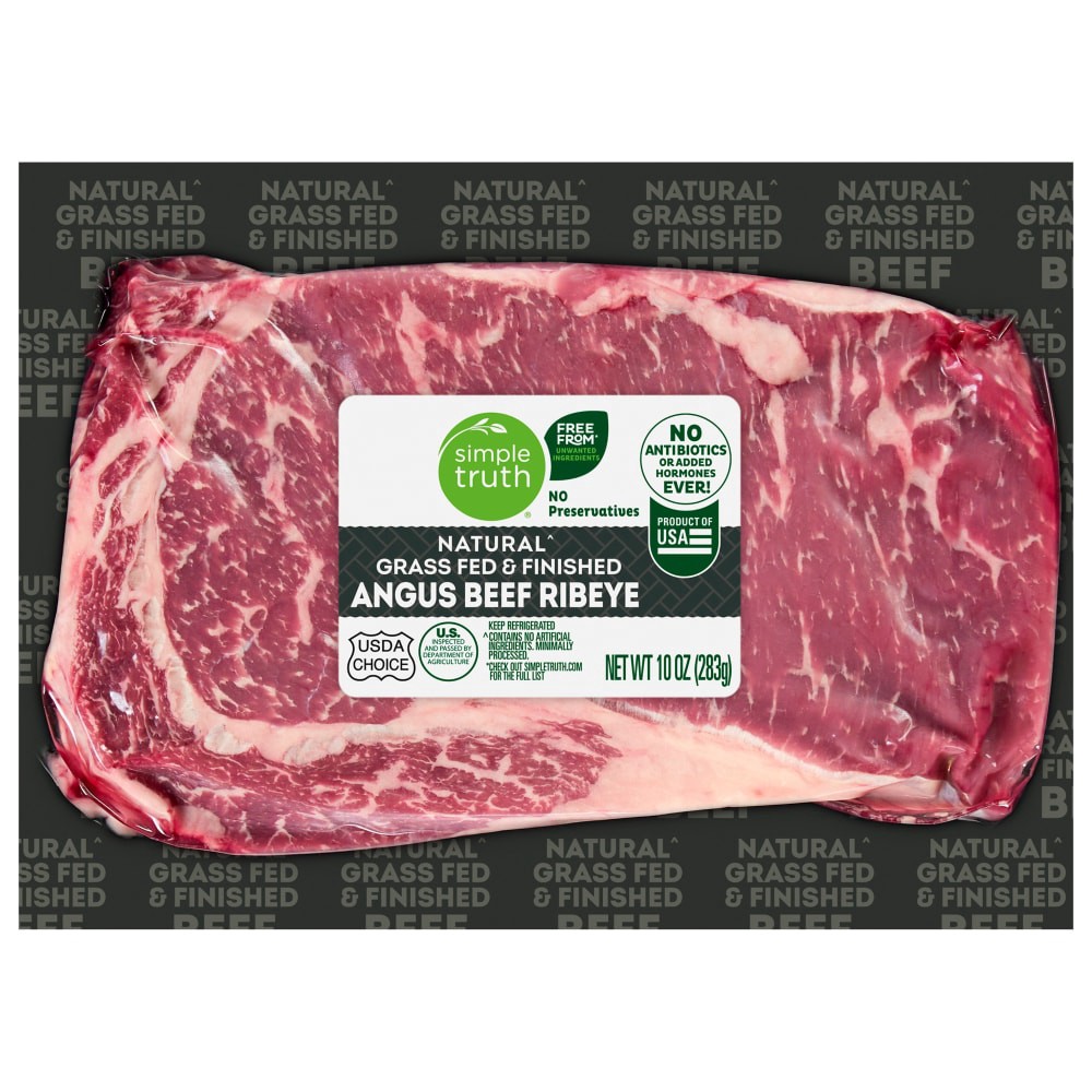 Simple Truth® Naturalˆ Grass Fed Angus Beef Ribeye Steak is a delight in every bite! This top-notch Angus beef ribeye steak is grass fed and contains no preservatives, antibiotics, or added hormones e…