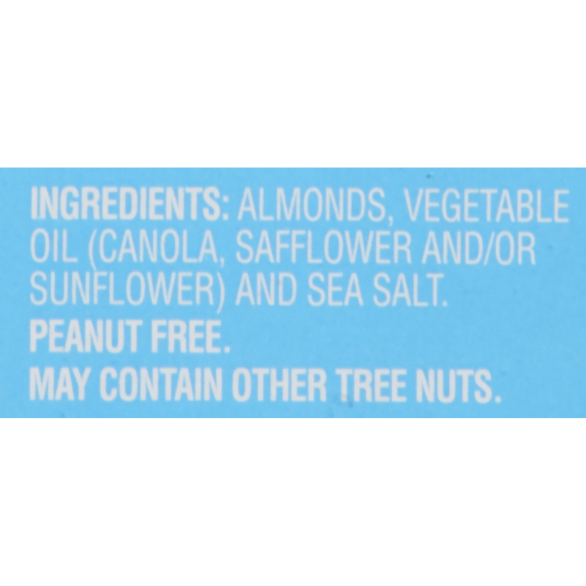 ALMONDS, VEGETABLE OIL (CANOLA, SAFFLOWER AND/OR SUNFLOWER), SEA SALT.