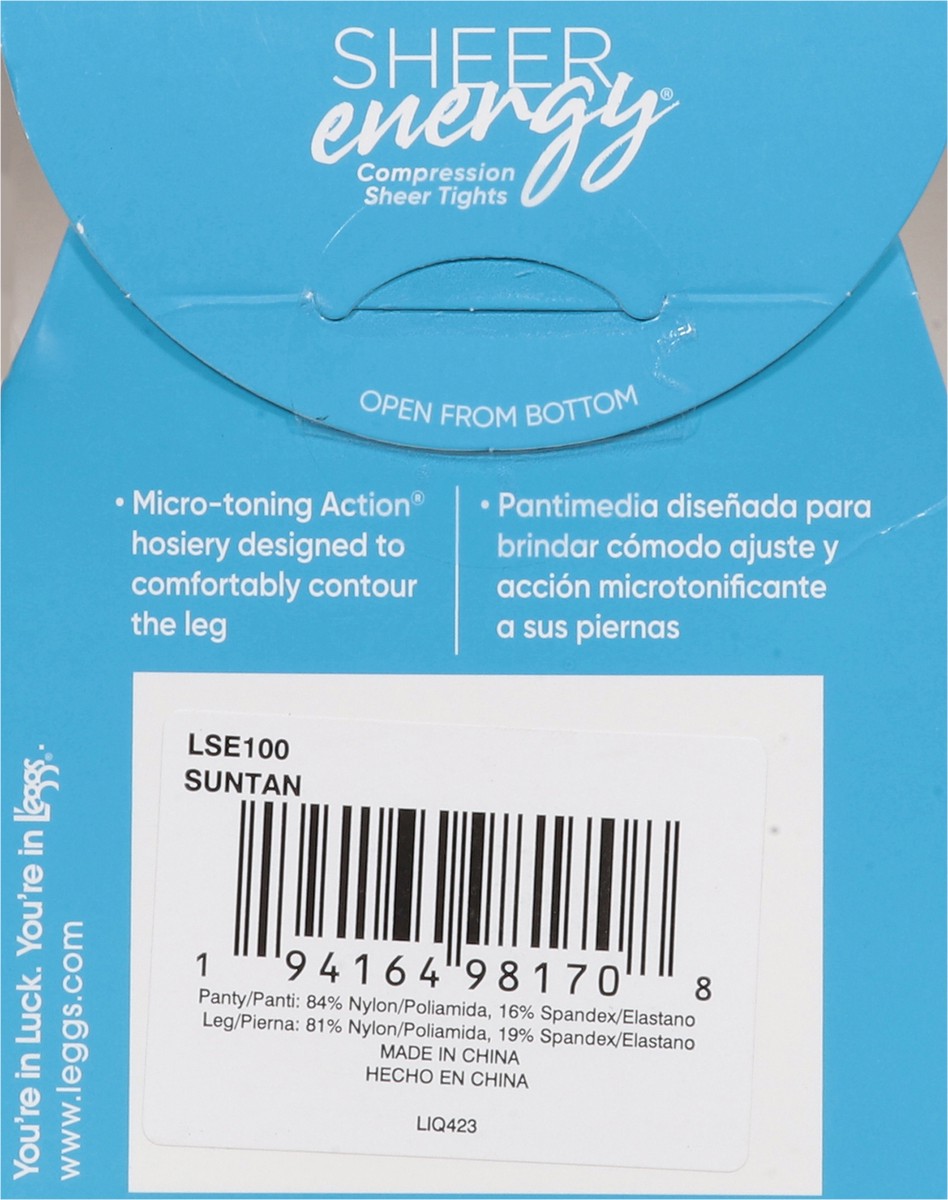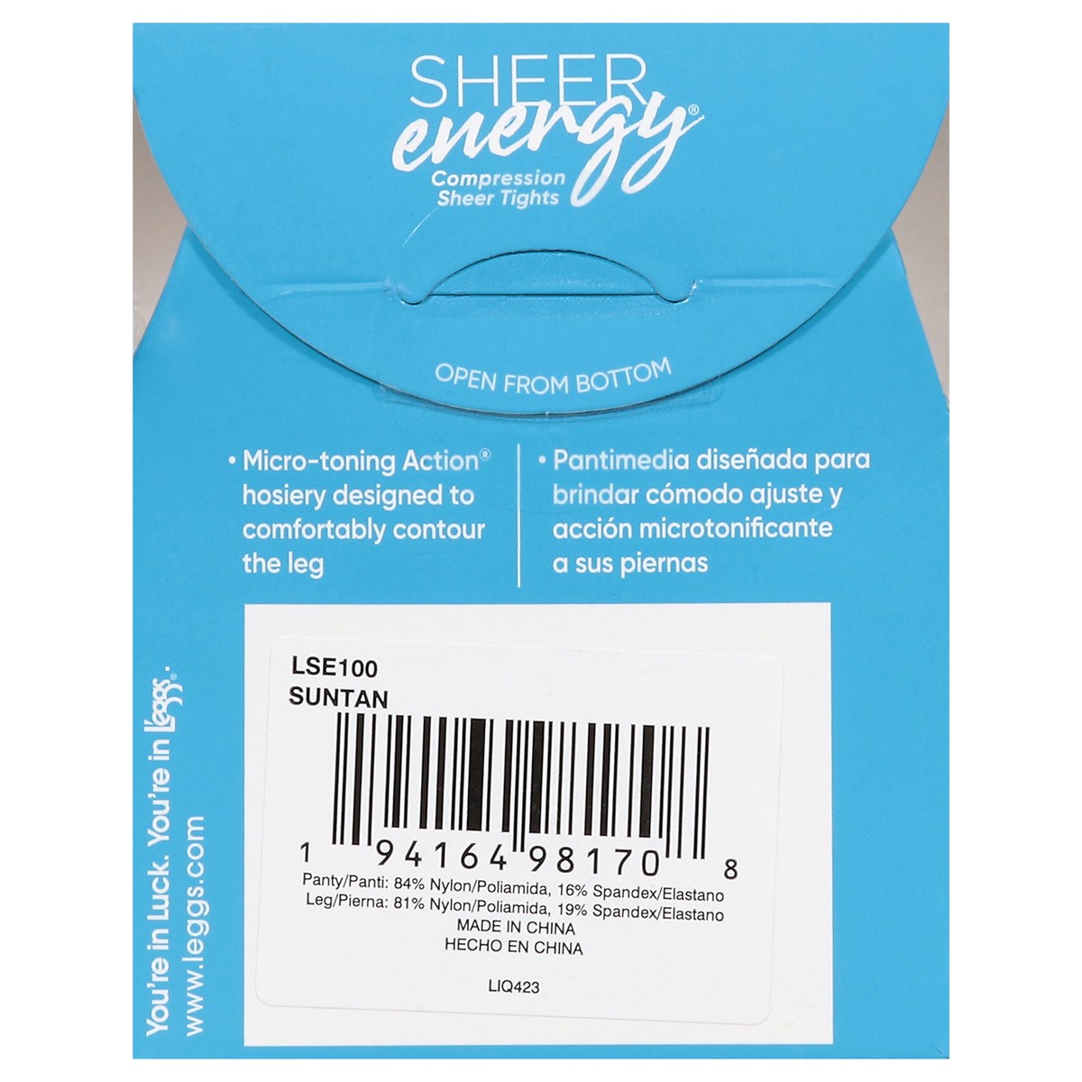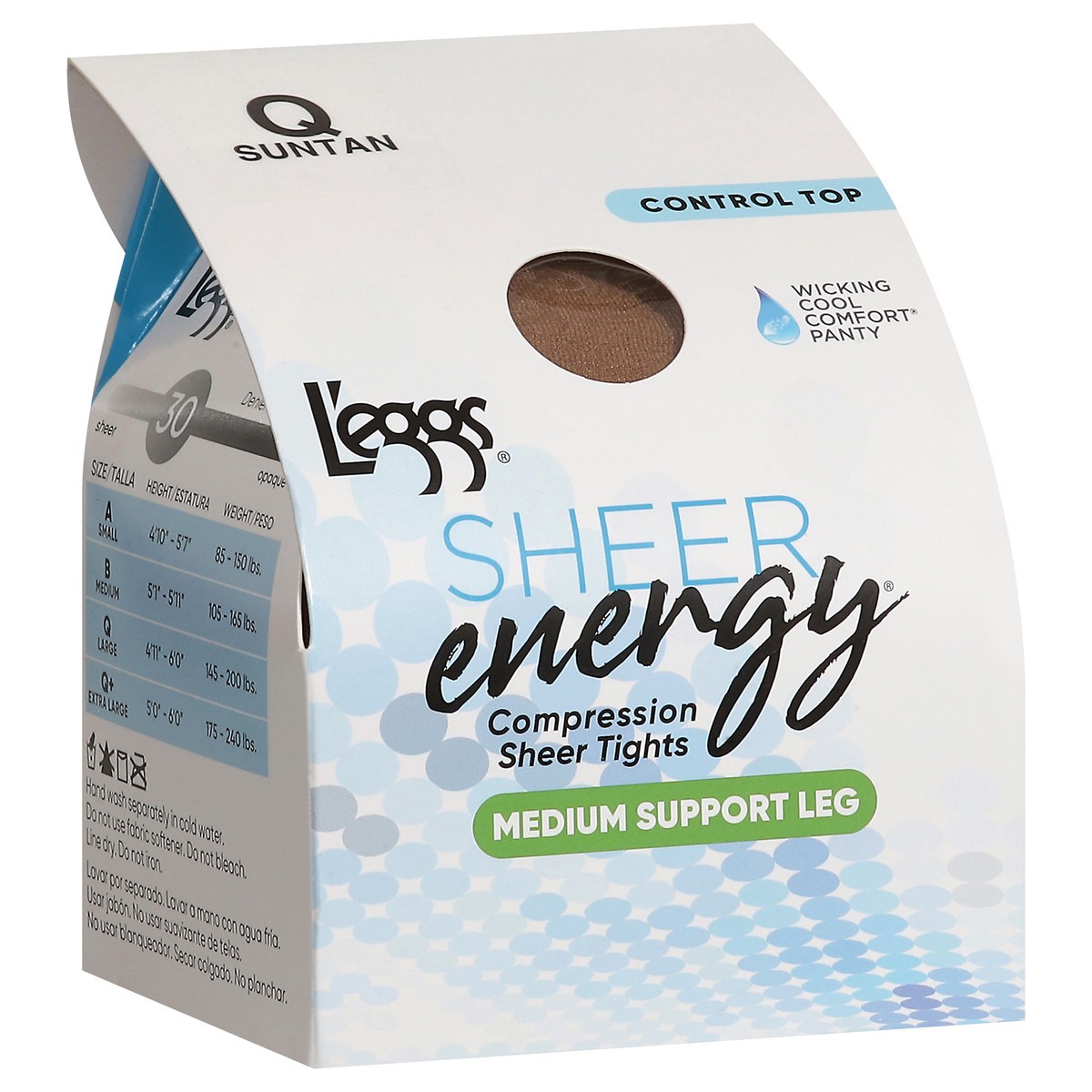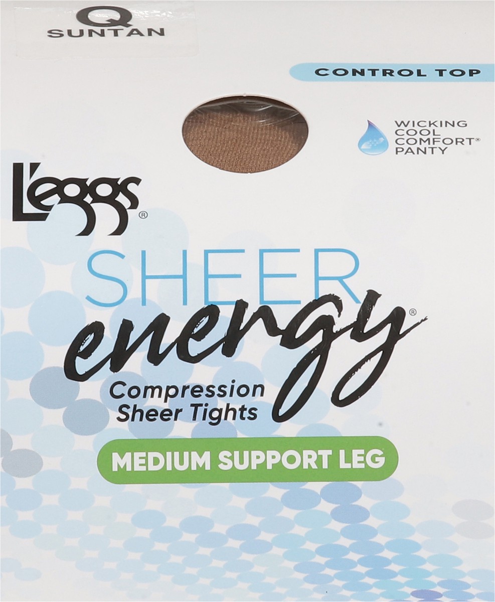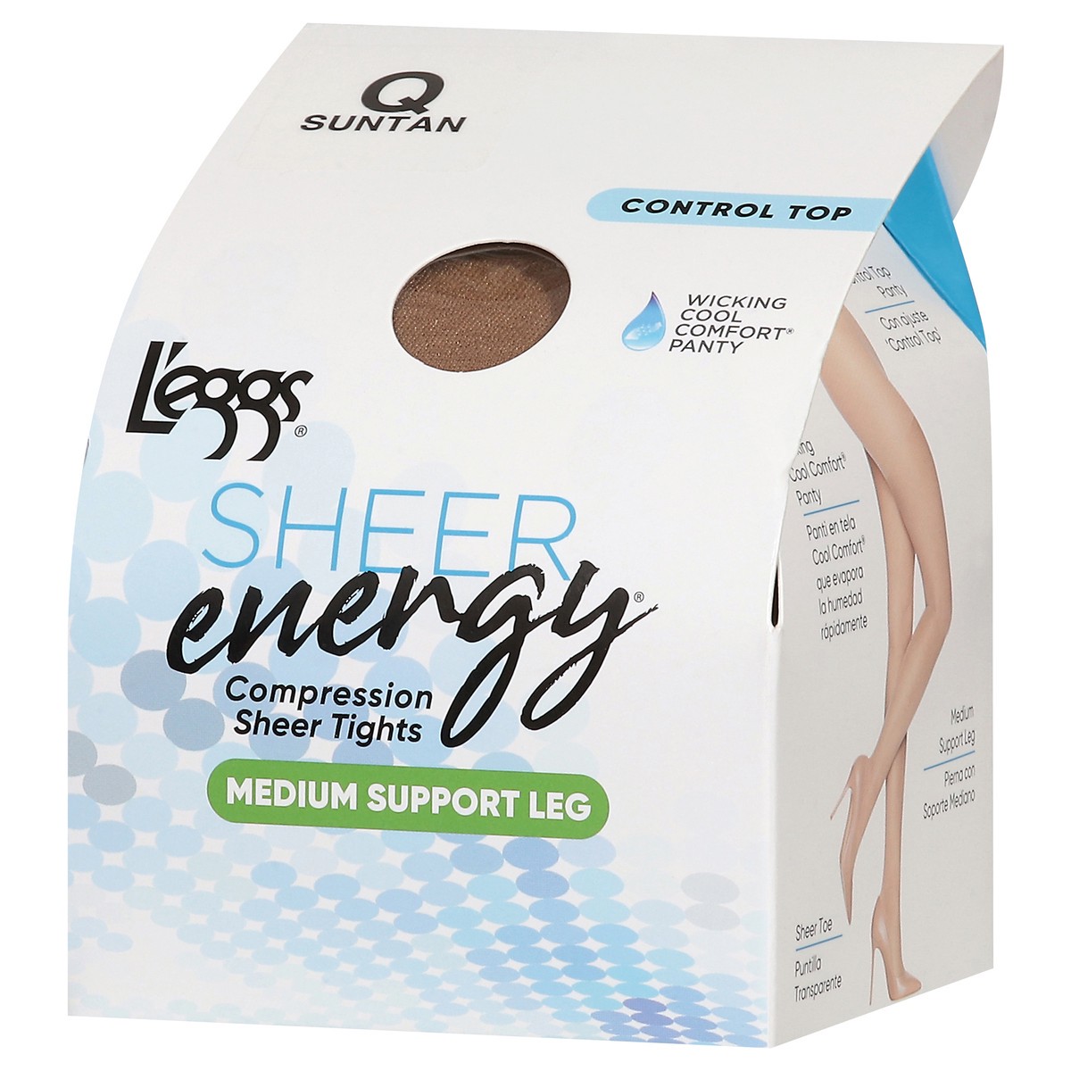 L'Eggs Sheer Energy Control Top Sheer Toe Pantyhose, Suntan, Size Q