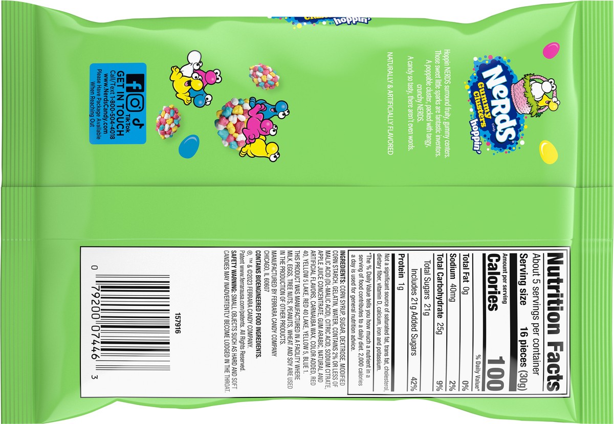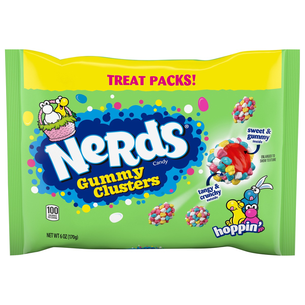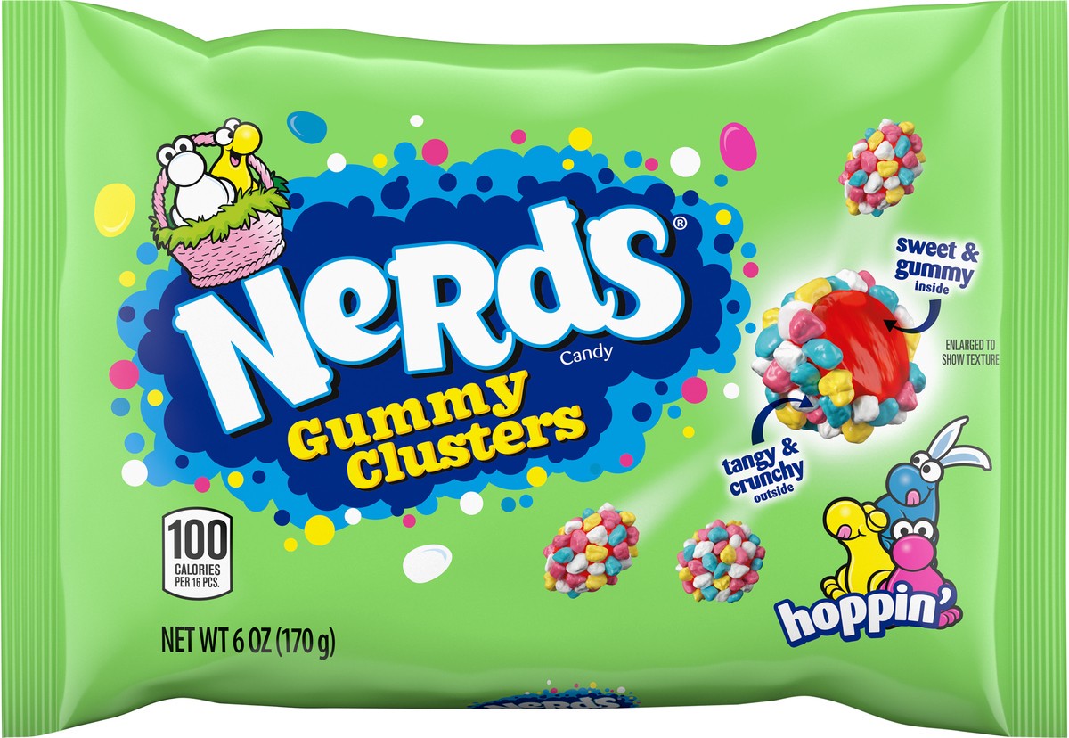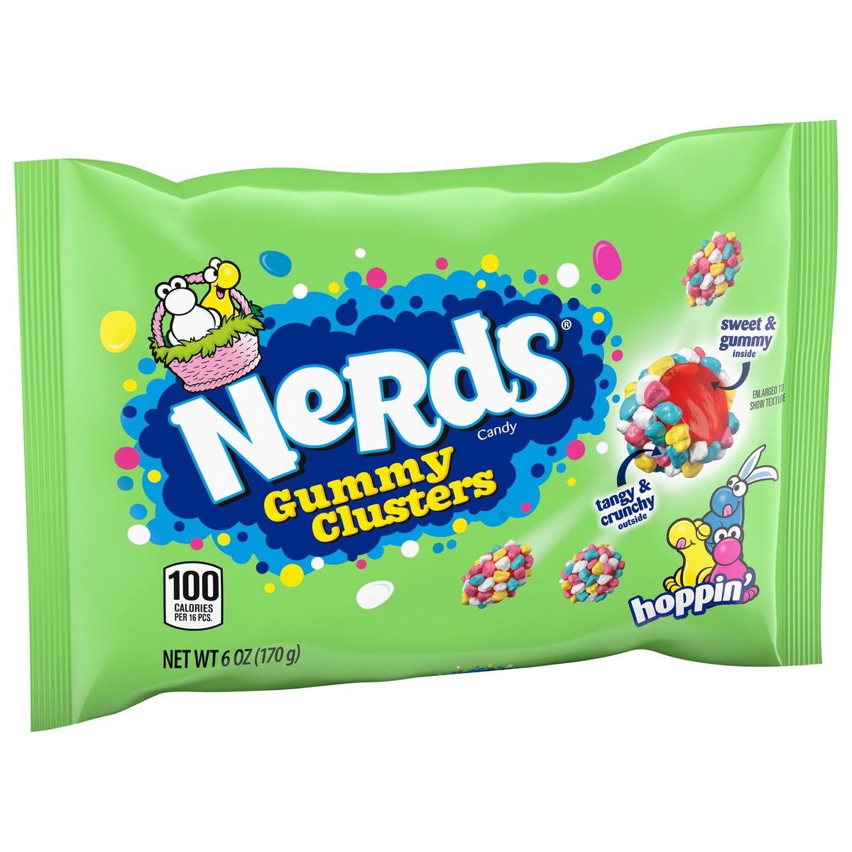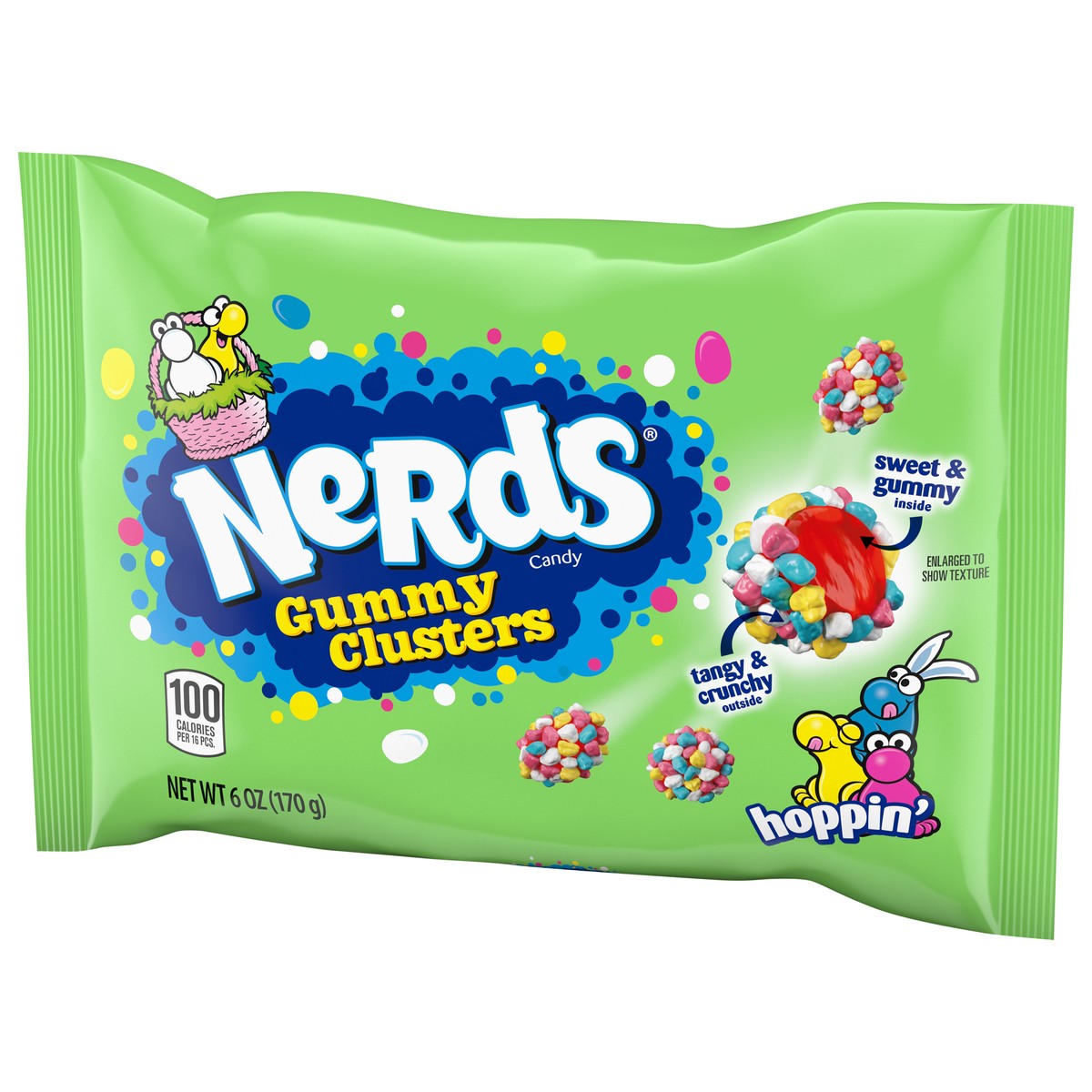 NERDS Hoppin' Gummy Clusters is made of crunchy mini NERDS around a sweet gummy center. Take your taste buds on a spring adventure with a twist on the gummy, crunchy rainbow candy. Make every Easter c…