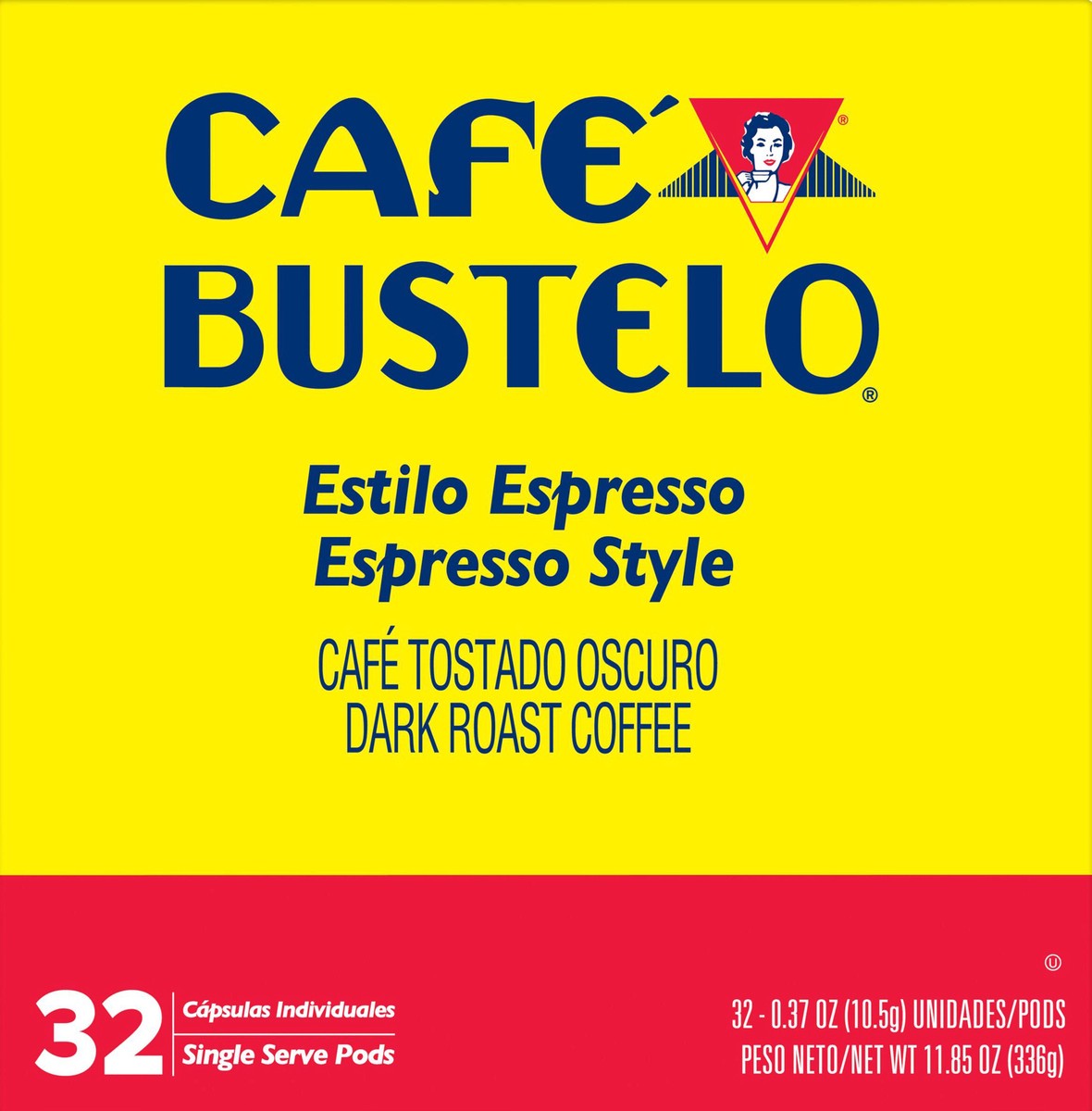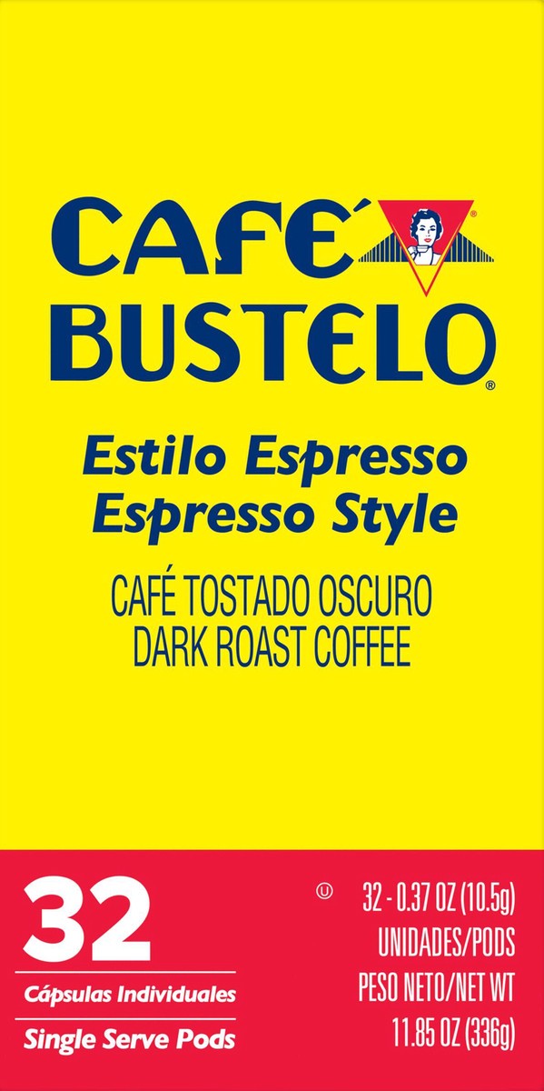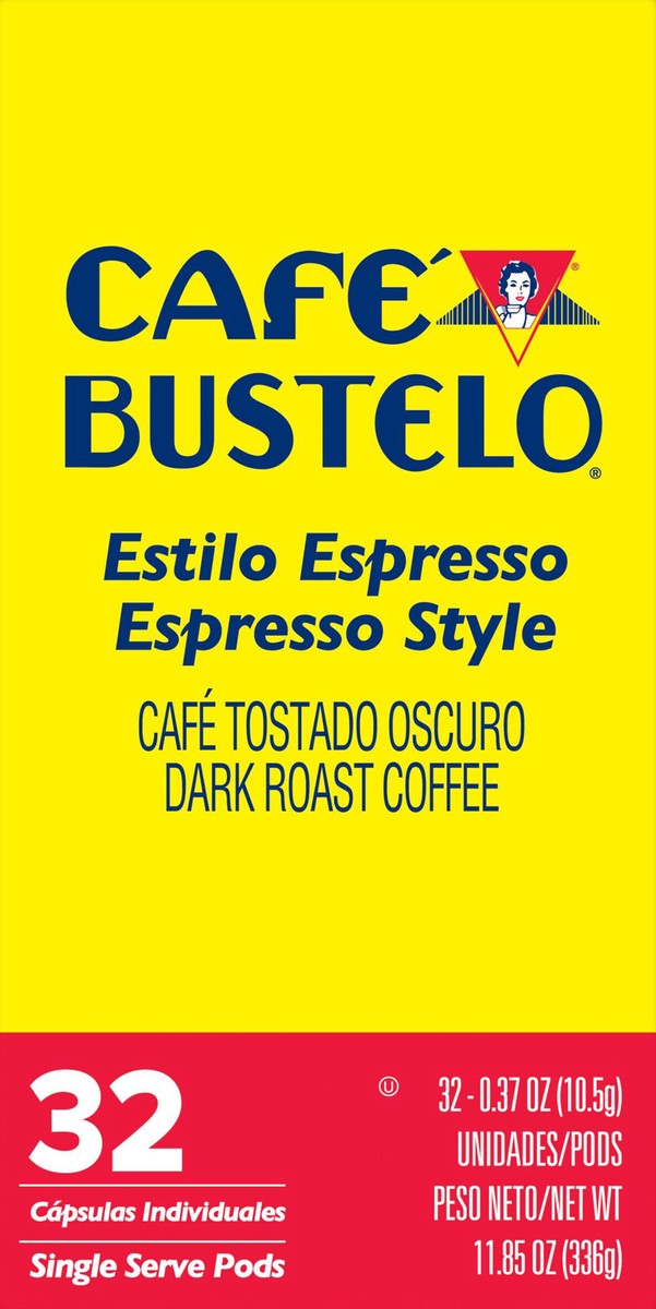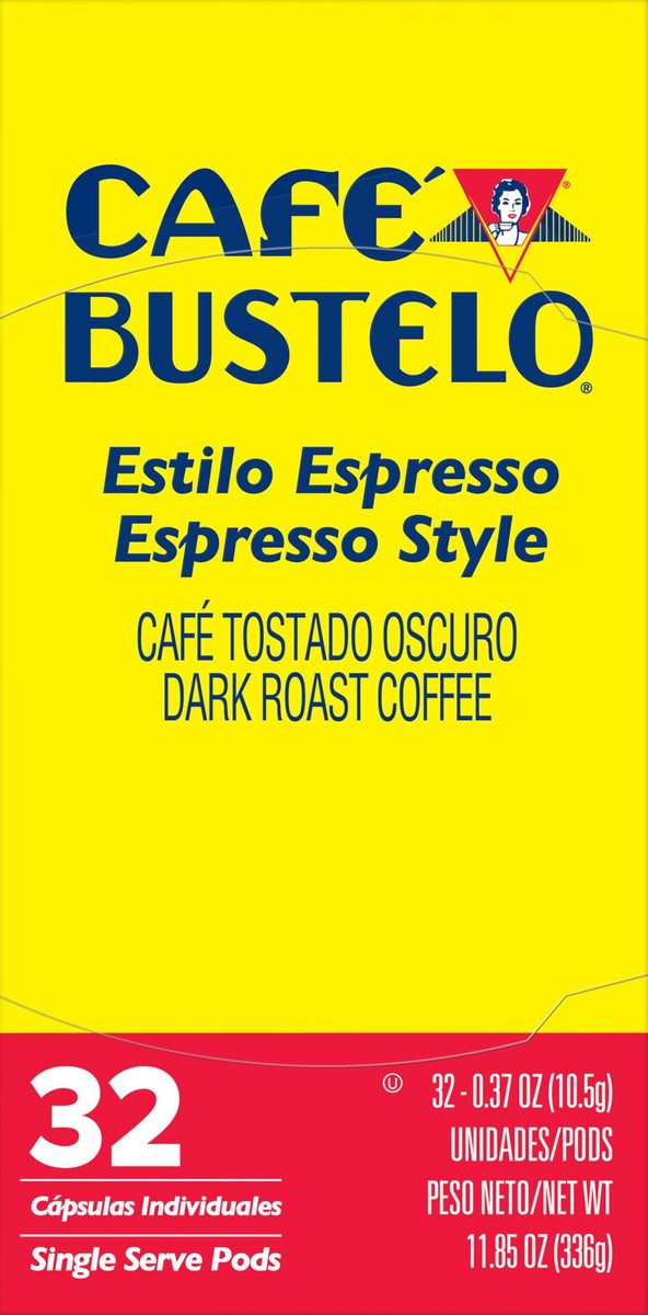- CONTAINS: 32-count box of Café Bustelo Espresso Style, dark roast, single serve coffee pods