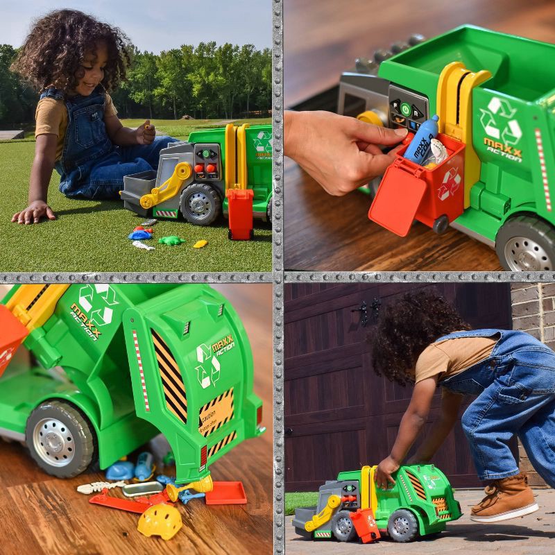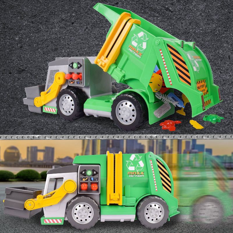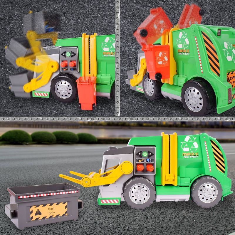 Introducing the 3-N-1 Maxx Recycler by Maxx Action! Measuring 18 inches long, this action packed truck is a true to scale version of what kids see on their streets every day! Use the dual joystick con…