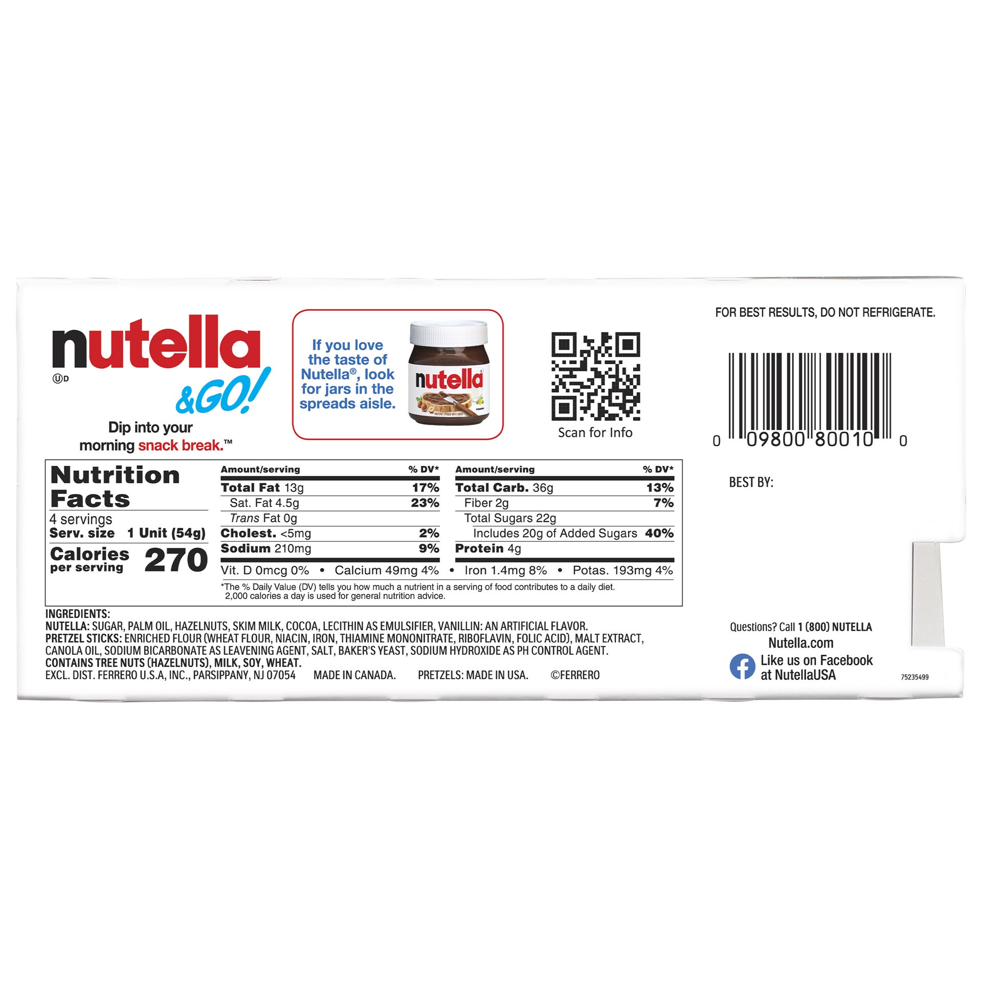 Nutella & Go! Hazelnut And Cocoa Spread With Pretzel Sticks Snack Cups 1.9 Oz Each - 4 Count