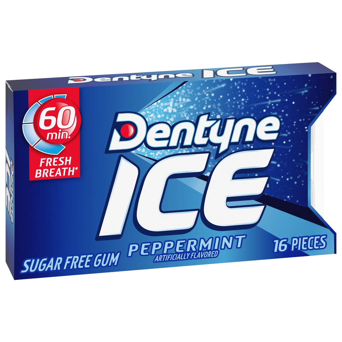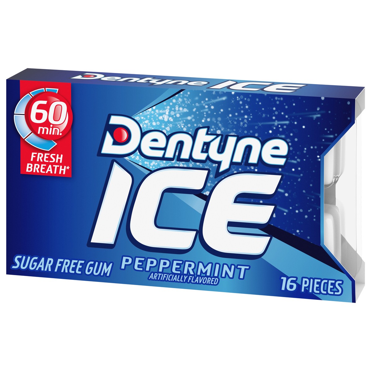 Dentyne Ice Peppermint Sugar Free Gum freshens your breath for up to 60 minutes\, including 20 minutes of chew time\, for a long-lasting feeling of clean. These small cubes of sugarless gum have 35% f…