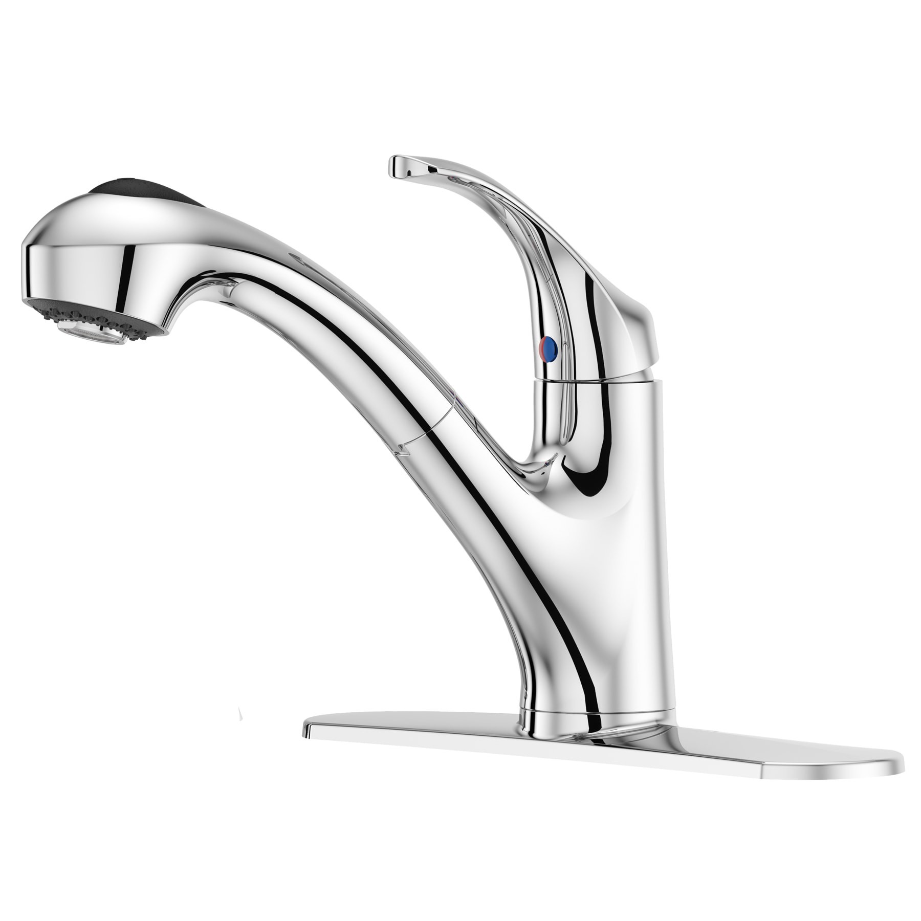 Polished chrome finish faucet from the Shelton collection. 1-hole or 3-hole installation only. Lever handle is easy to use. Pull-Out spray head makes kitchen tasks a breeze. Lead-free; NSF certified t…