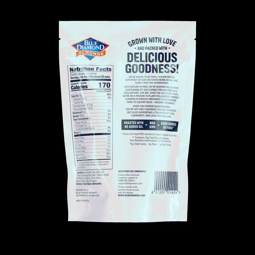 ALMONDS, SEA SALT AND PEPPER SEASONING (SEA SALT, YEAST EXTRACT, MODIFIED CORN STARCH, CITRIC ACID, NATURAL FLAVOR), BLACK PEPPER.CONTAINS: TREE NUTS (ALMONDS).