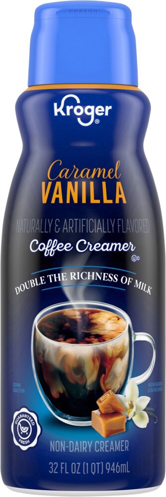Kroger® Caramel Vanilla Coffee Creamer adds a delicious twist to your morning routine. It contains a tasty blend of sweet vanilla and rich caramel flavors. This non-dairy creamer turns your average co…