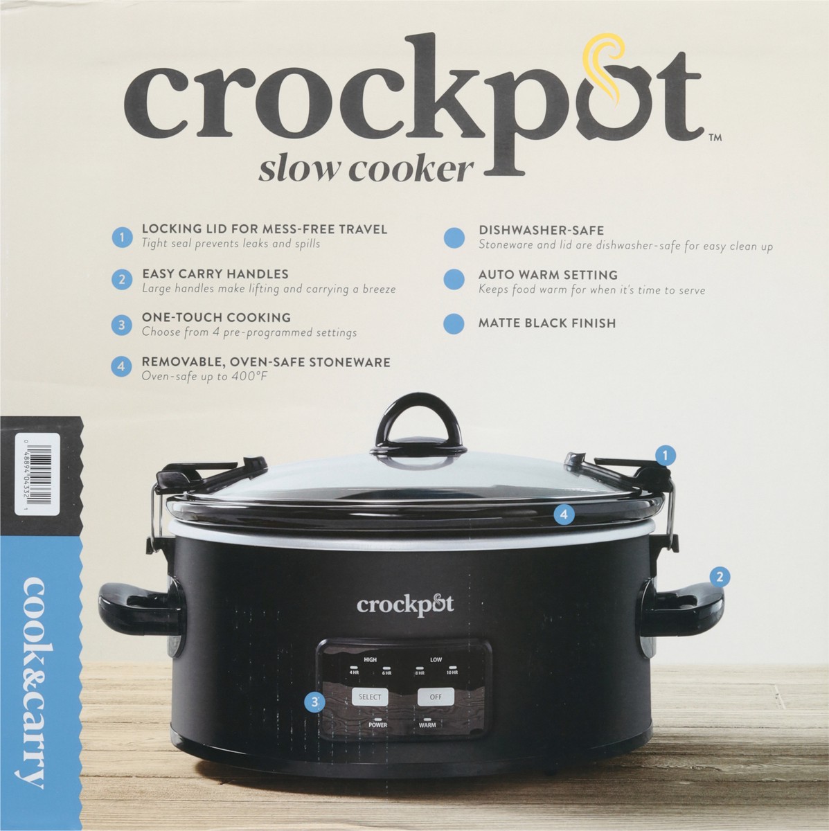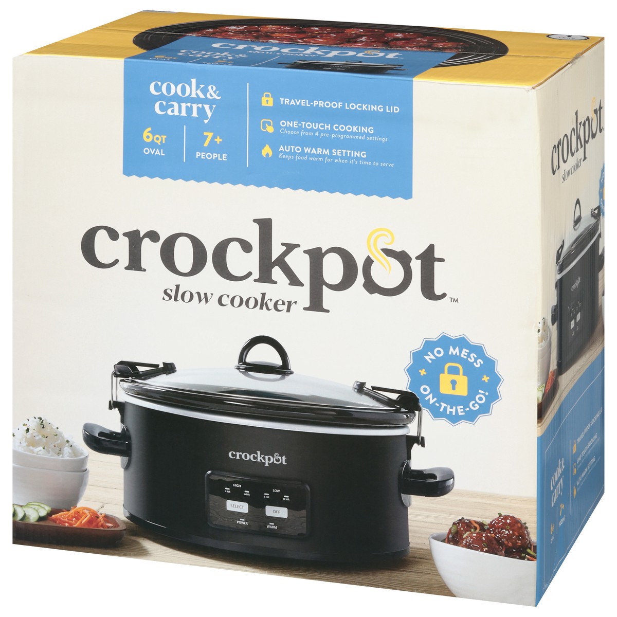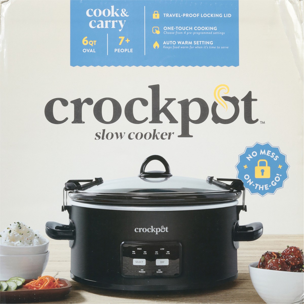 Travel-proof locking lid. One-touch Cooking: Choose from 4 pre-programmed settings. Auto Warm Setting: Keeps food warm for when it's time to serve. No mess. On-the-go. (1) Locking Lid for Mess-free Tr…
