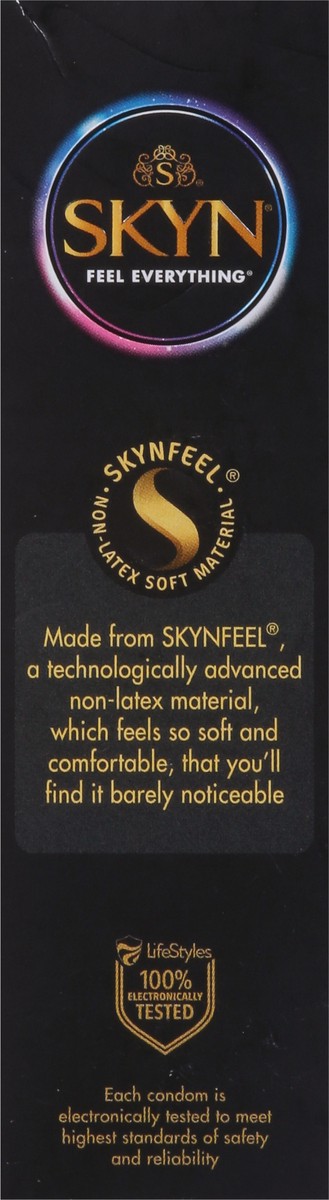 No. 1 non-latex condom. Feel everything. Skynfeel. Non-latex soft material. Skyn Polyisoprene Lubricated Condoms are used for contraception and for prophylactic purposes to help reduce the risk of pre…