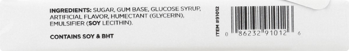 Sugar, Gum Base, Glucose Syrup, Artificial Flavor, Humectant (Glycerin), Emulsifier (Soy Lecithin).