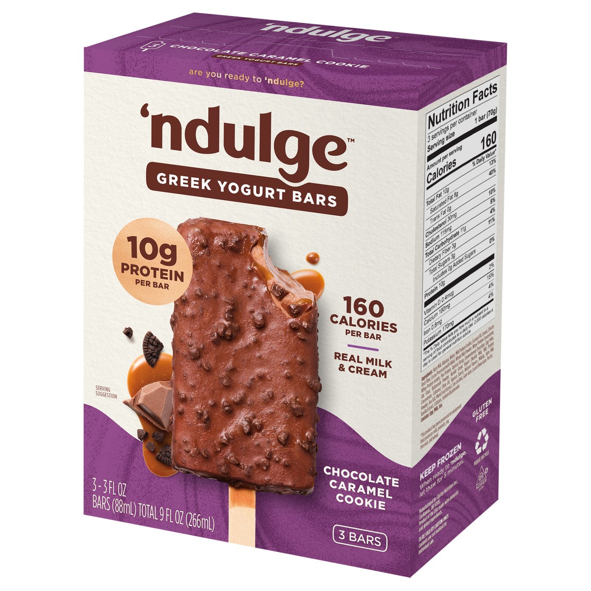 'ndulge 10g Protein Chocolate Caramel Cookie Greek Yogurt Bars - 3 - 3 fl oz Bars