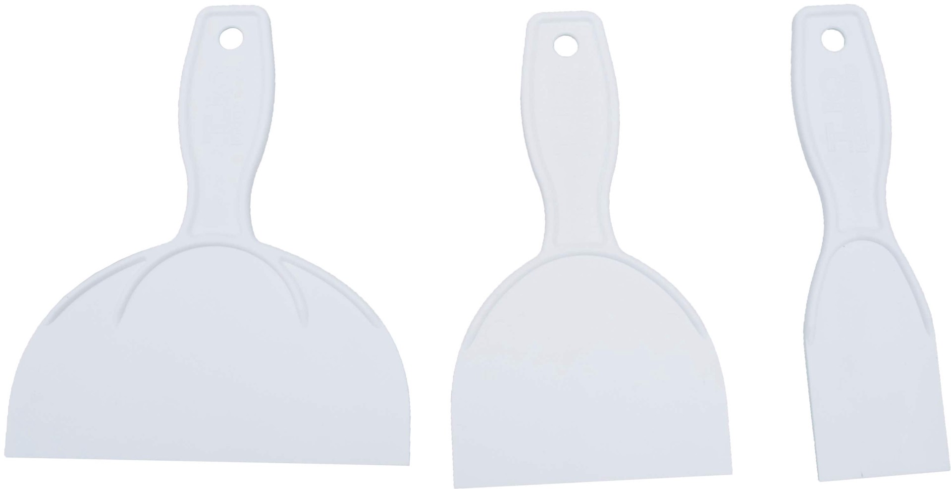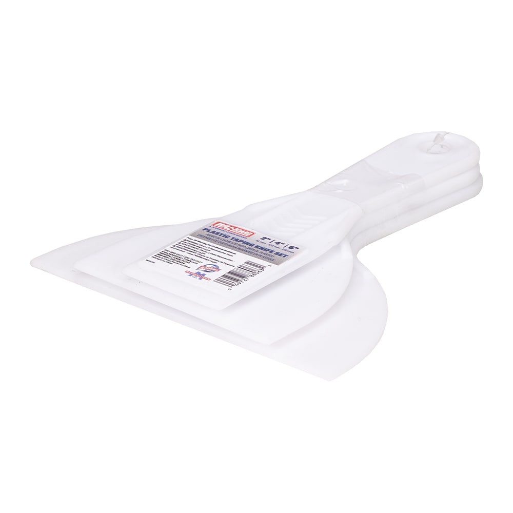 Used to quickly and efficiently spread and smooth joint compound and other materials. Set includes three knives measuring 2", 4", and 6". Tapered blades are reinforced for extra durability. High-impac…