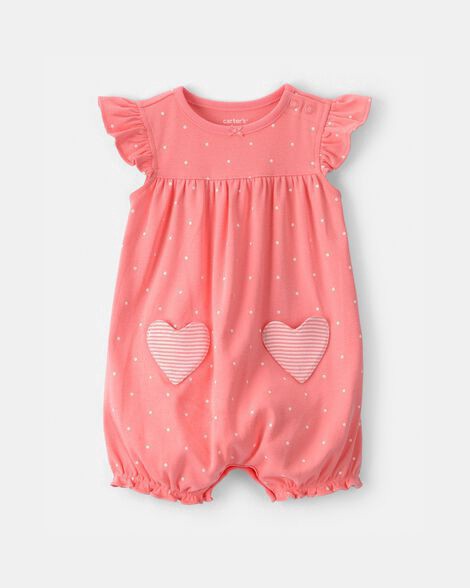 slide 1 of 1, Carters Baby Girl Heart Pocket Short-Sleeve Romper - Pink Pink 12M, 1 ct