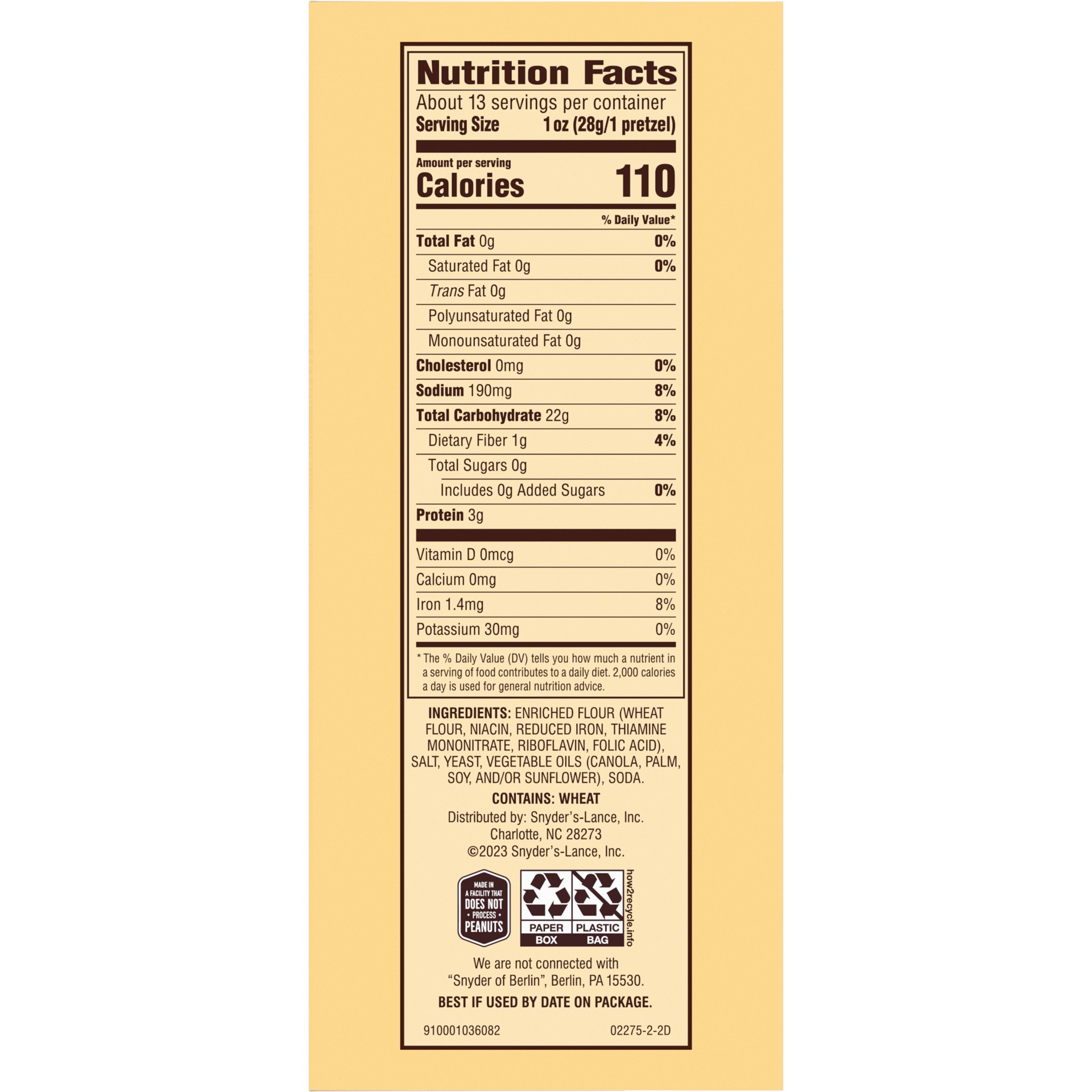 With Snyder's of Hanover Sourdough Hard Pretzels, you can enjoy the great taste of aged sourdough in a crunchy, traditional pretzel shape. Plus, they're Non-GMO Project Verified and made in a facility…