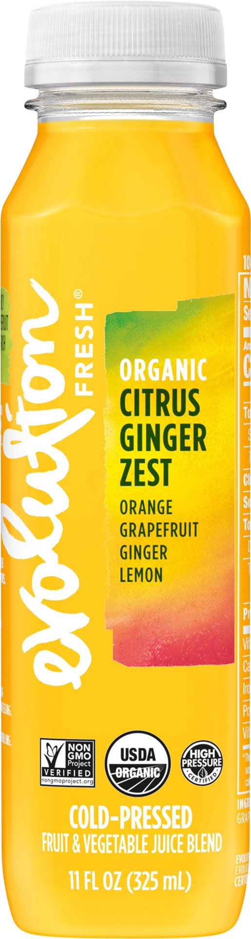 Drink in Mother Nature's best with Evolution Fresh Organic Citrus Ginger Zest. This satisfying fruit and vegetable juice blend is a vibrant combination of juicy oranges, tangy grapefruit and spicy gin…