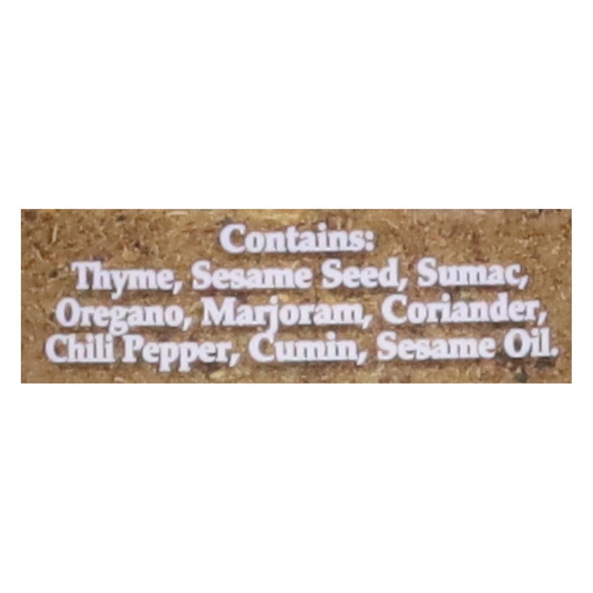 Contains: Thyme, Sumac, Sesame Seed, Oregano, Marjoram, Coriander, Chili Pepper, Cumin, Sesame Oil.