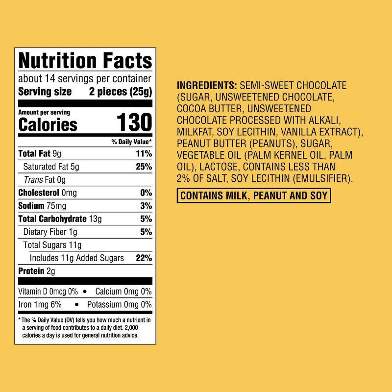 SEMI-SWEET CHOCOLATE (SUGAR, UNSWEETENED CHOCOLATE, COCOA BUTTER, UNSWEETENED CHOCOLATE PROCESSED WITH ALKALI, MILKFAT, SOY LECITHIN, VANILLA EXTRACT), PEANUT BUTTER (PEANUTS), SUGAR, VEGETABLE OIL (P…