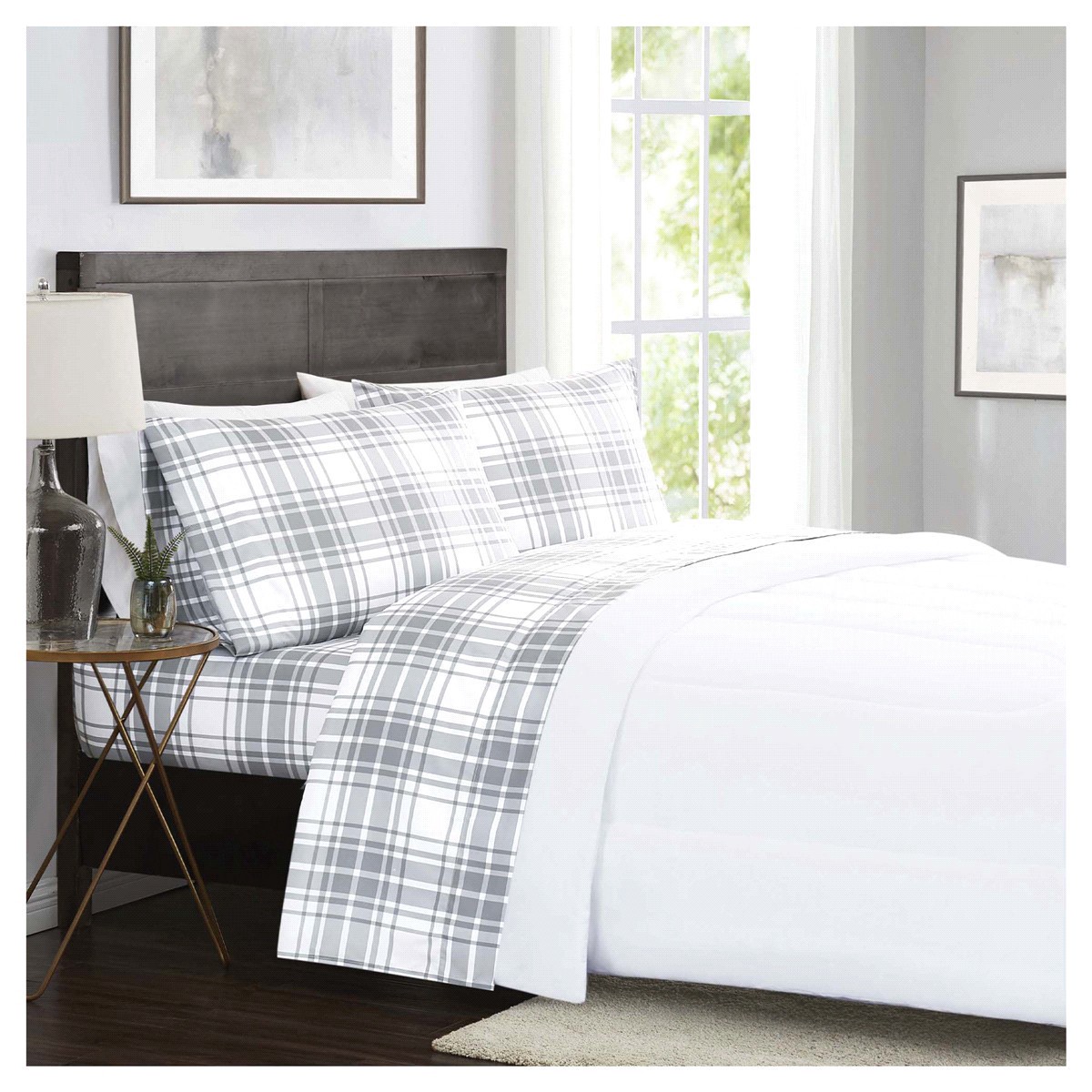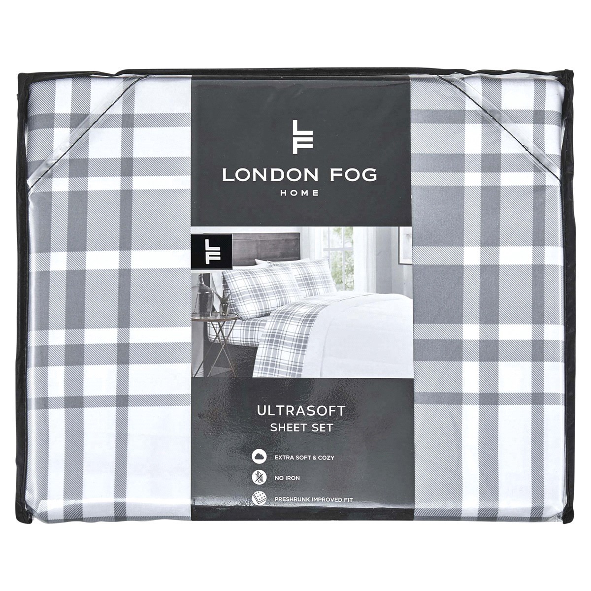 London Fog Gray Plaid King Sheet Set