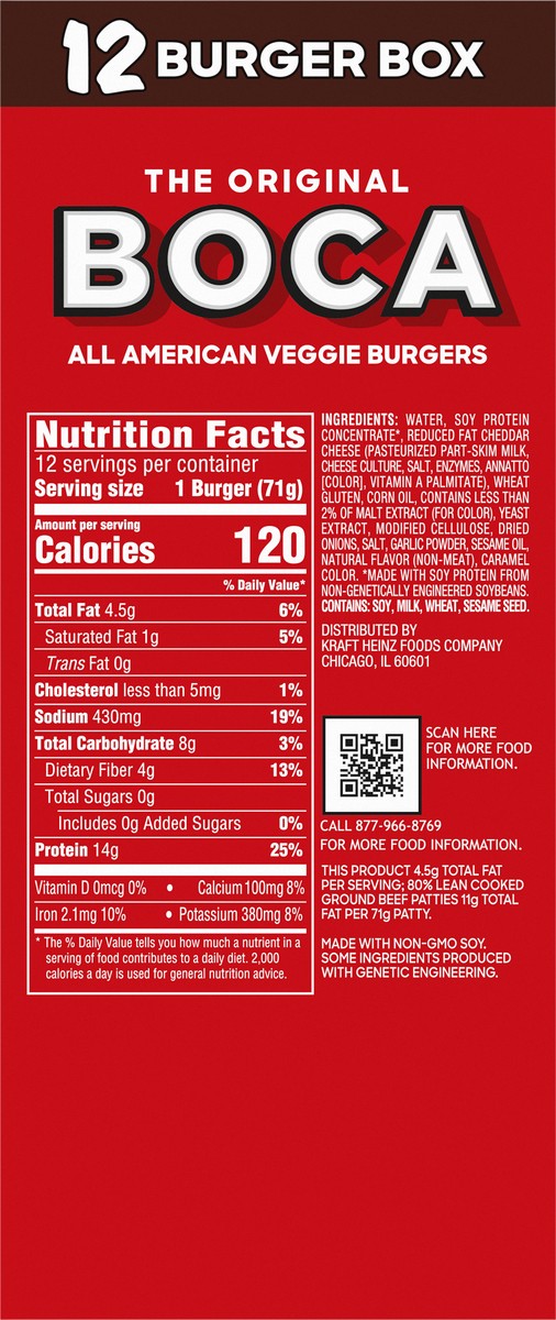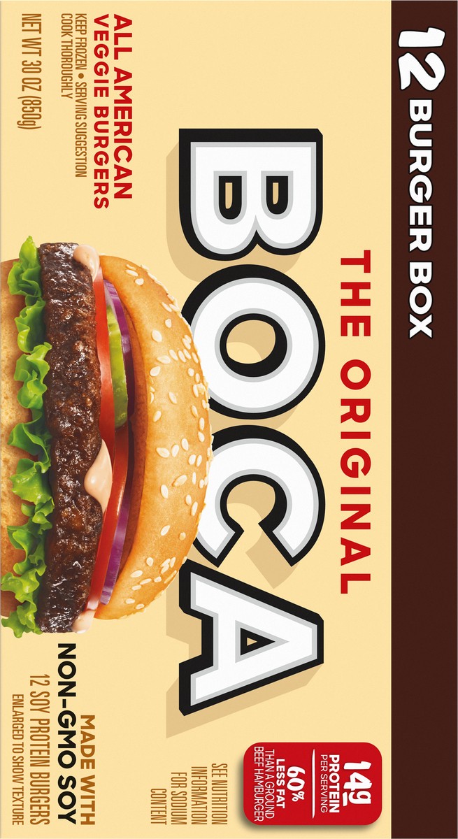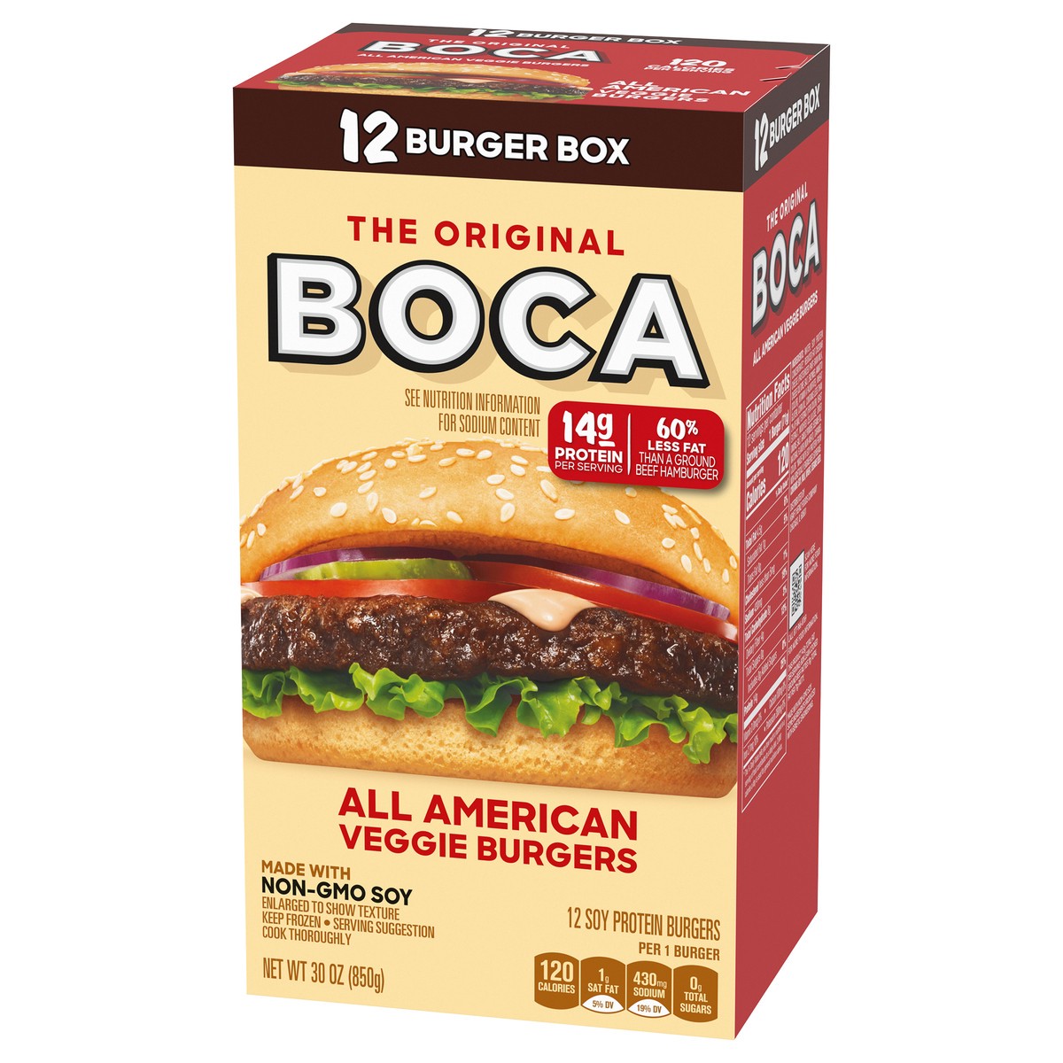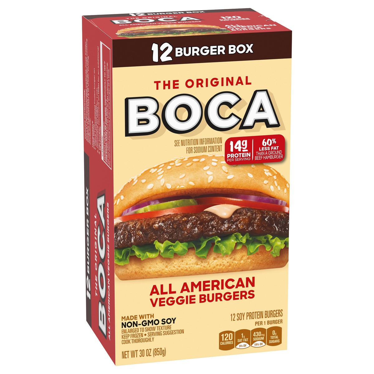 BOCA All American Veggie Burgers with Non-GMO Soy are a tasty, meatless option, making them the perfect vegetarian-friendly frozen entree. Made with soy protein, garlic, onion and cheddar cheese, our …