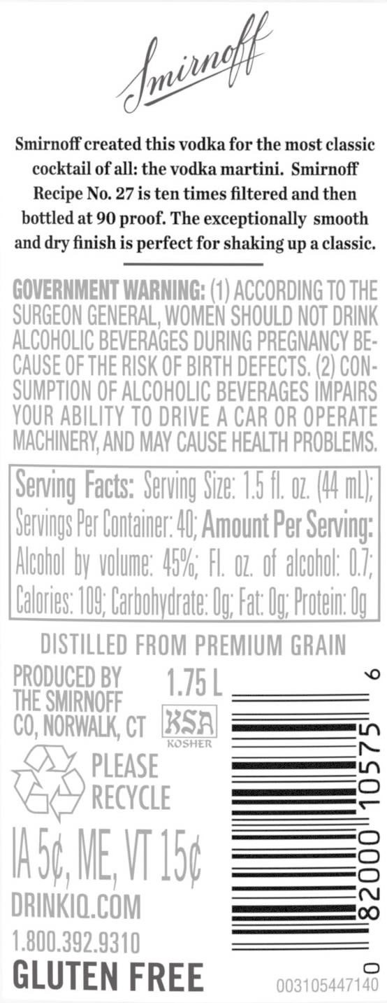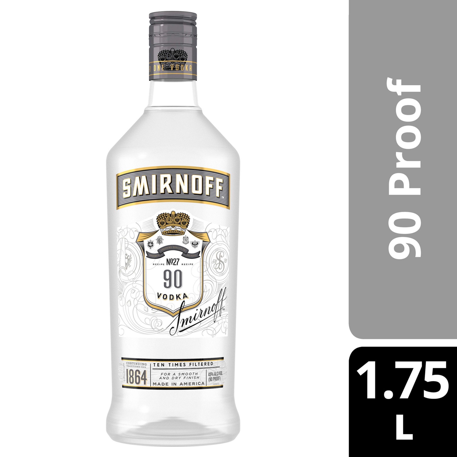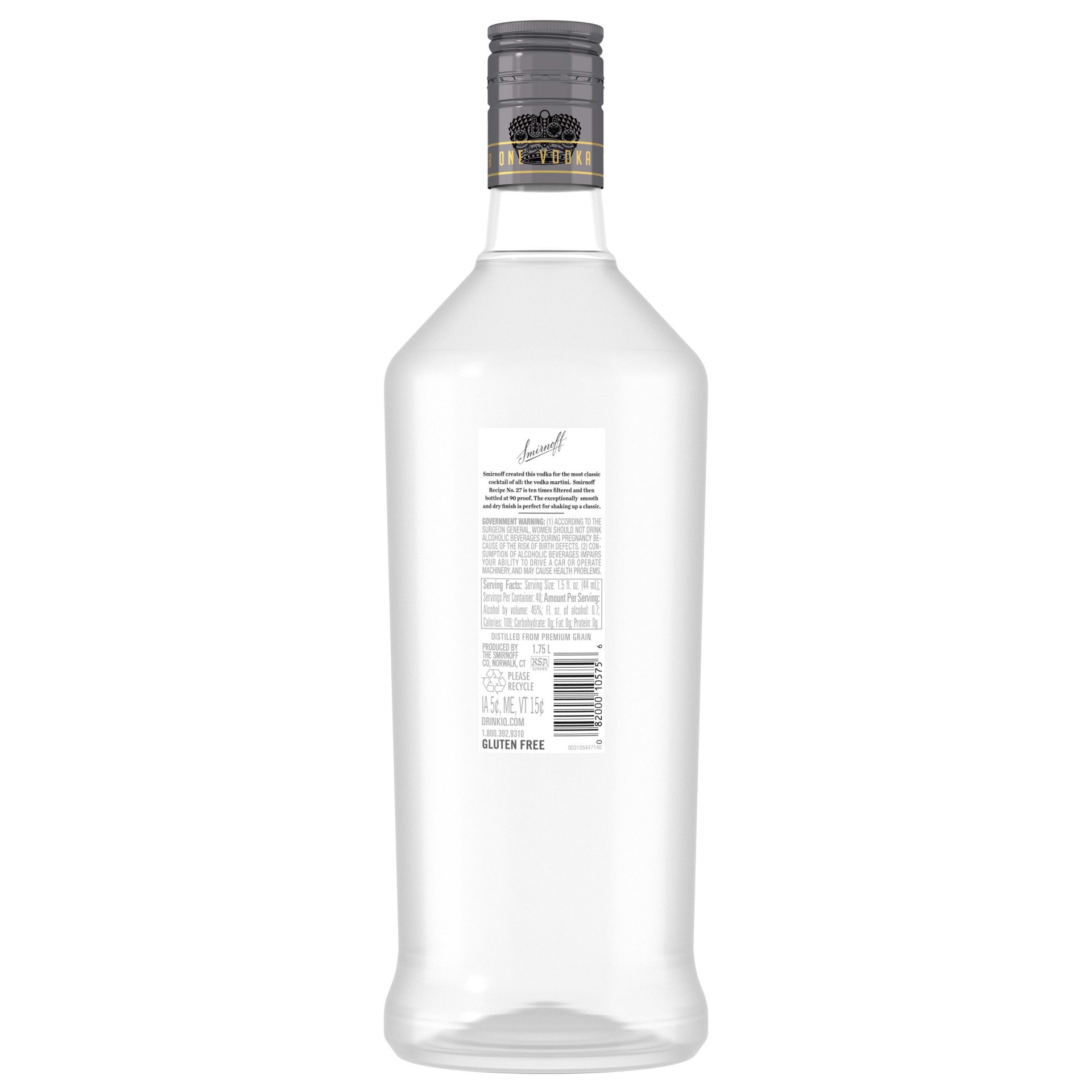 Whether you sip it on the rocks or mixed with soda and a twist, Smirnoff 90 Proof Vodka is ready for any cocktail party. Triple distilled and 10 times filtered, this gluten free vodka is Kosher Certif…