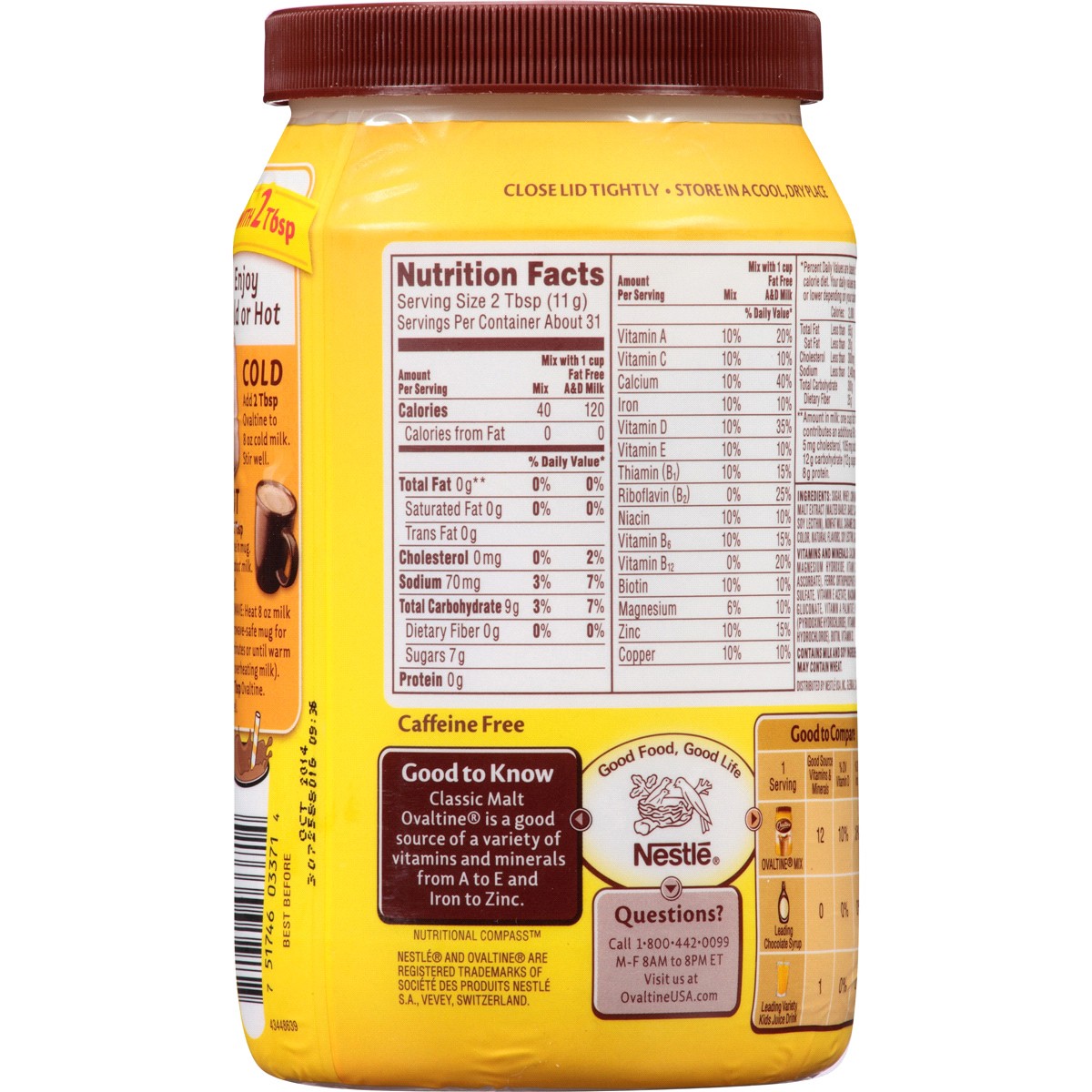 Enjoy Ovaltine: Cold add 2 tbsp Ovaltine mix to 8 oz cold milk. Stir well. Hot: Place 2 tbsp Ovaltine in mug. Add 8 oz hot milk. Stir well. Microwave: Heat 8 oz milk in microwave-safe mug for 1-1/2 mi…