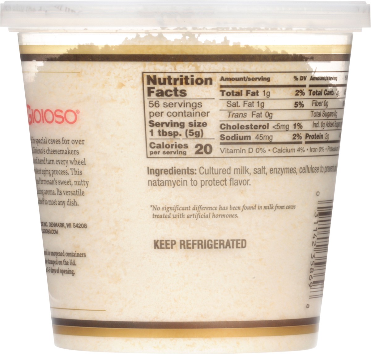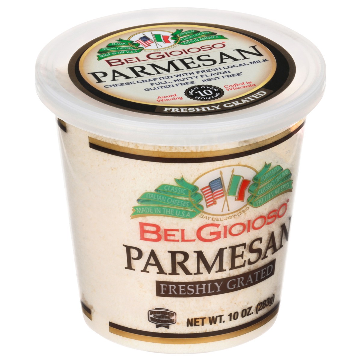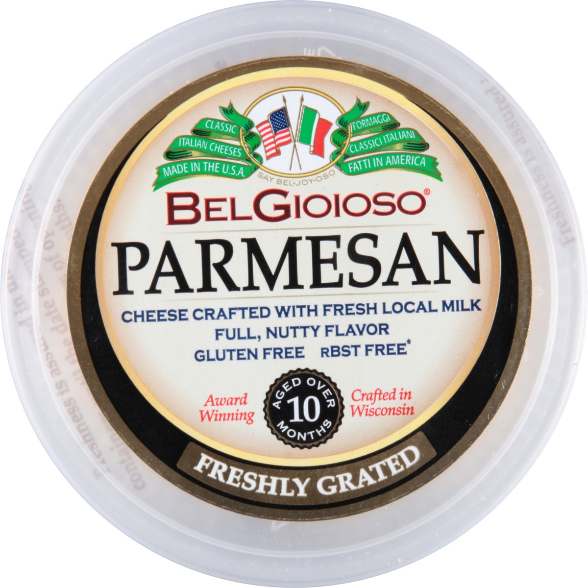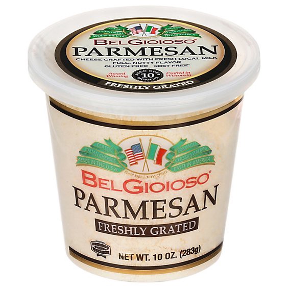 Freshly grated. Proudly Wisconsin cheese. Classic Italian cheeses. rBST free (No significant difference has been found in milk from cows treated with artificial hormones). Aged over 10 months. Parmesa…