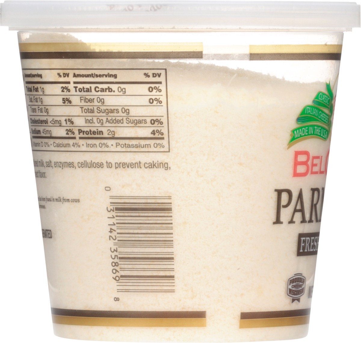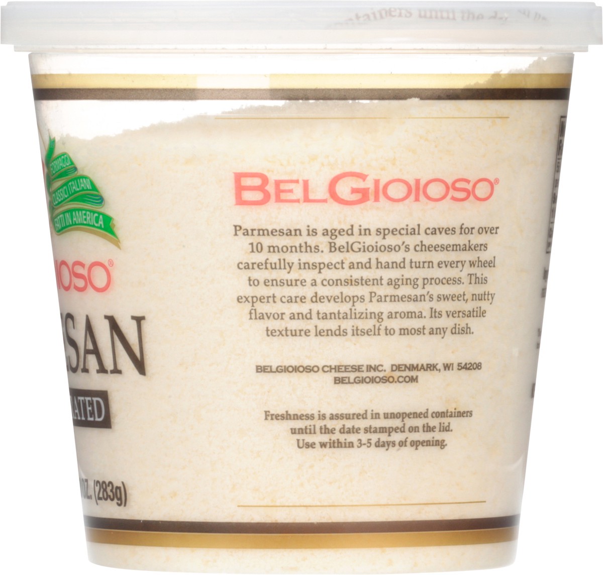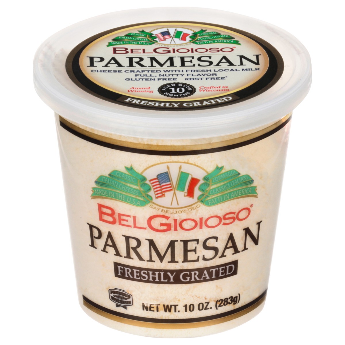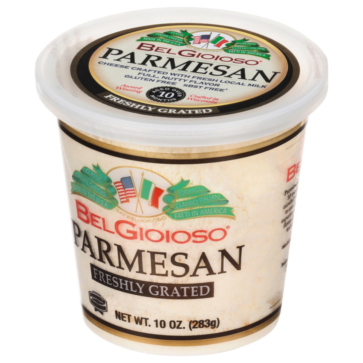Freshly grated. Proudly Wisconsin cheese. Classic Italian cheeses. rBST free (No significant difference has been found in milk from cows treated with artificial hormones). Aged over 10 months. Parmesa…