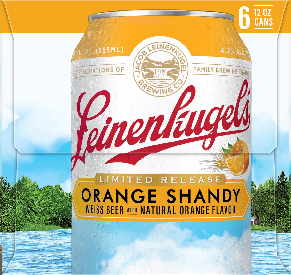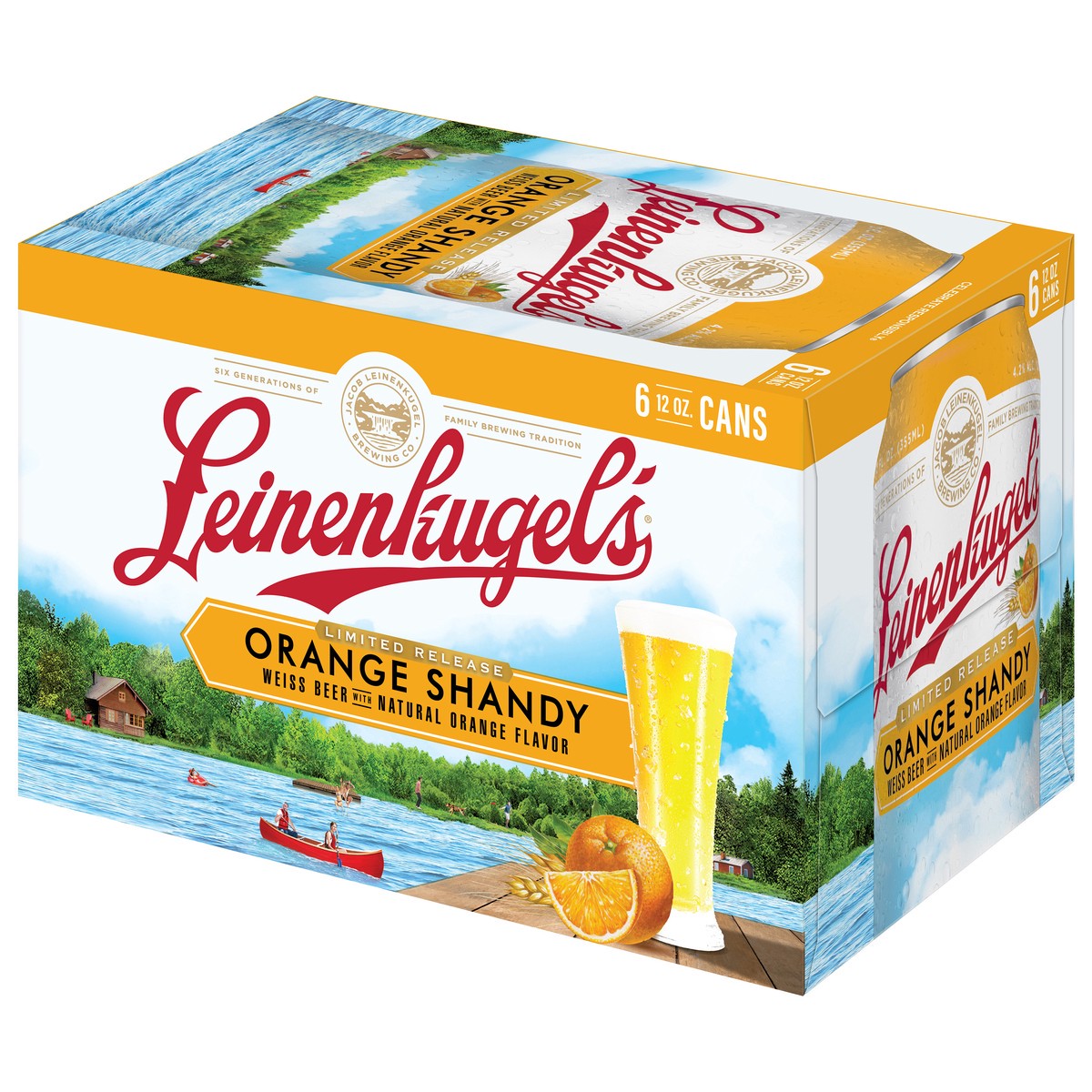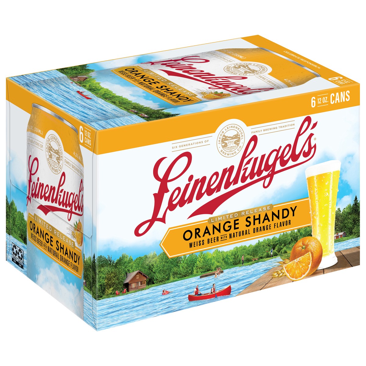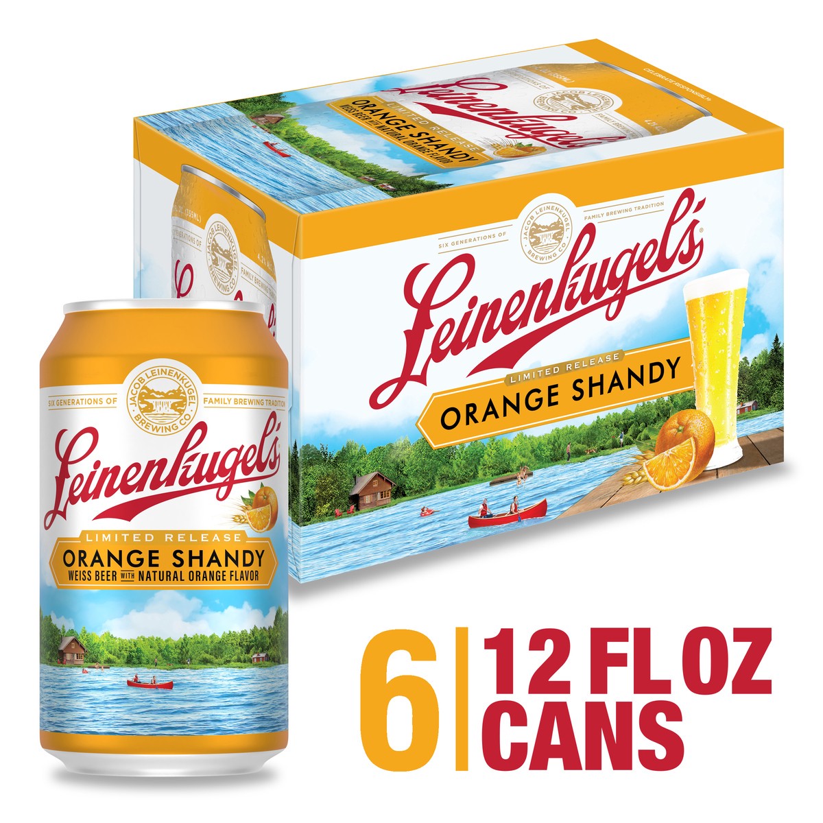 - 6 pack of 12-oz beer cans of Leinenkugel's Belgian-Style Sunset Wheat BeerWheat beer with notes of orange and blueberry sweetness