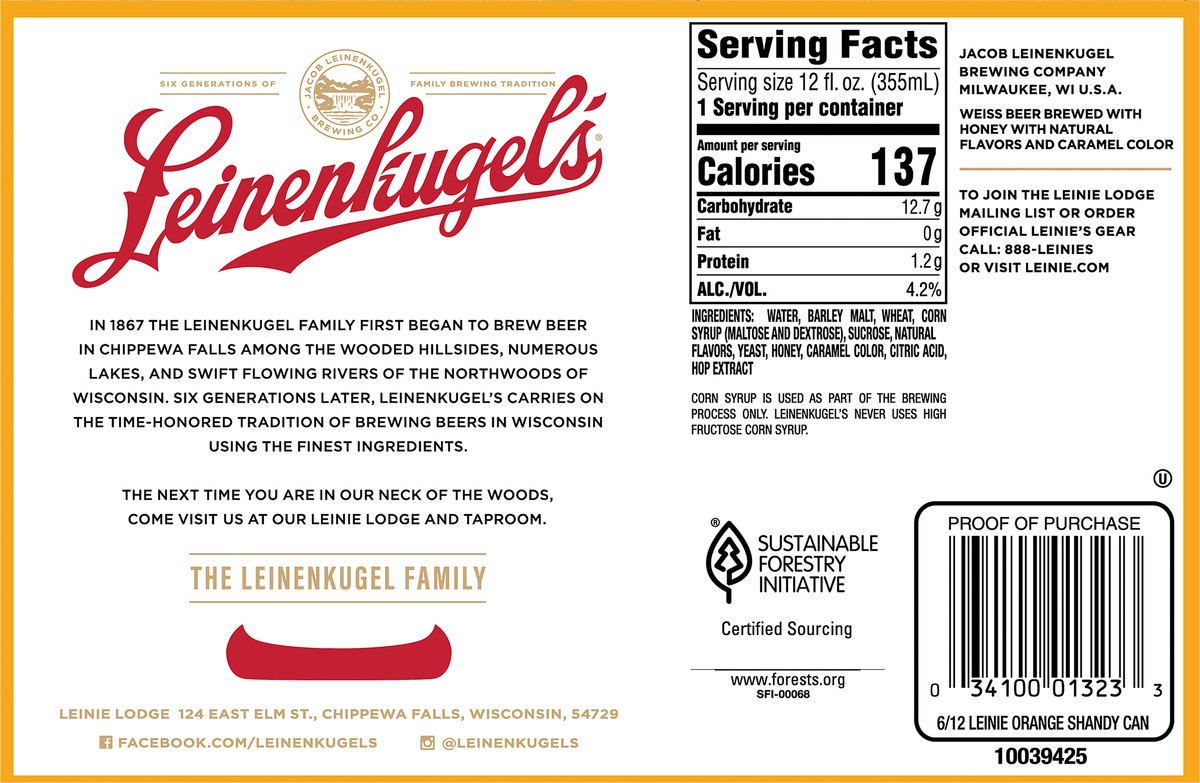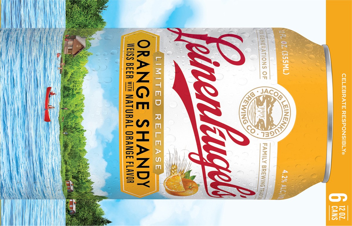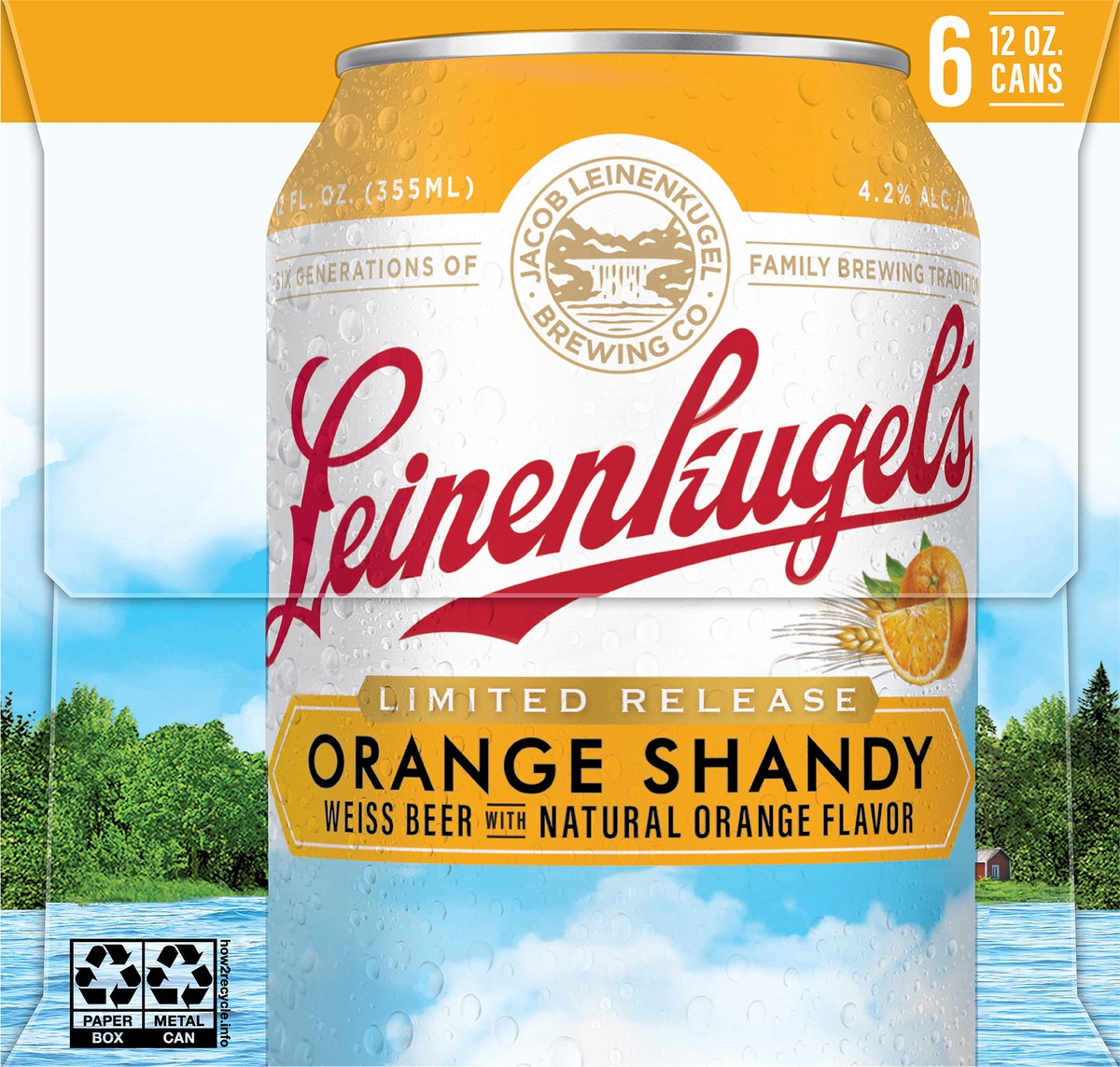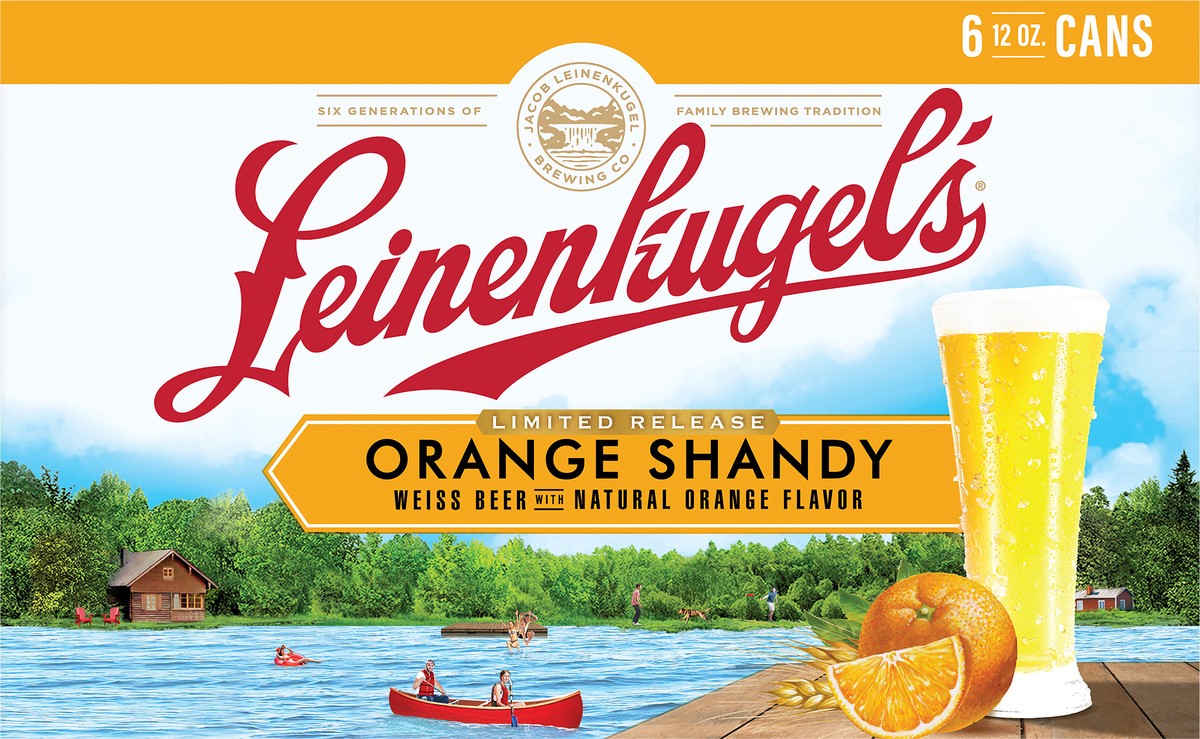 - 6 pack of 12-oz beer cans of Leinenkugel's Belgian-Style Sunset Wheat BeerWheat beer with notes of orange and blueberry sweetness