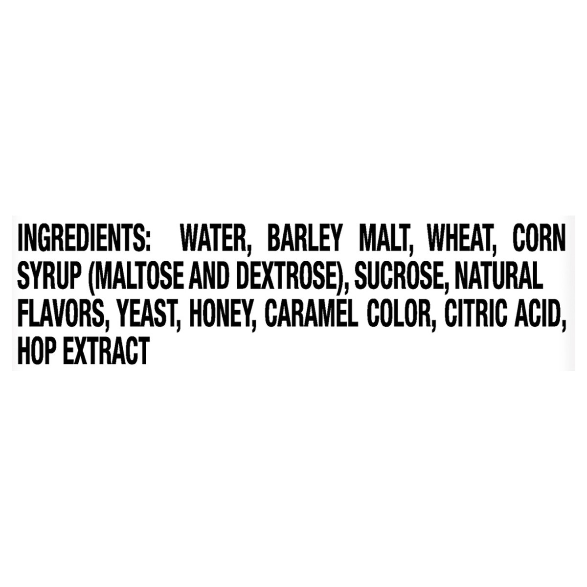 Water, Barley Malt, Wheat, Corn Syrup (Maltose and Dextrose), Sucrose, Natural Flavors, Yeast, Honey, Caramel Color, Citric Acid, Hop Extract.