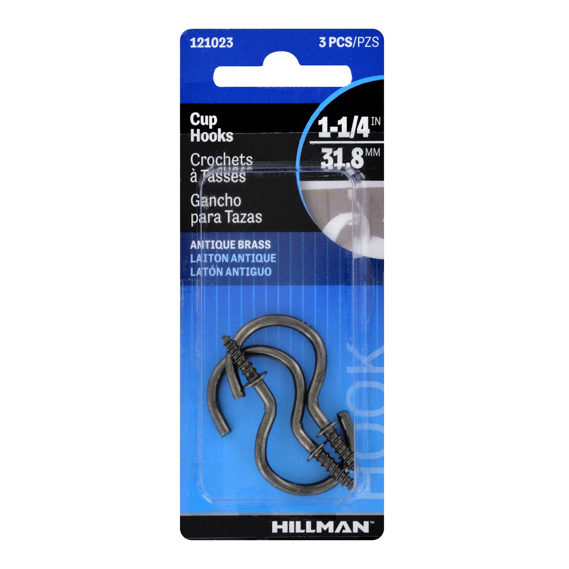 Hillman 1.25-in Antique Brass Steel Cup hook 3 -Pack