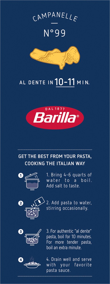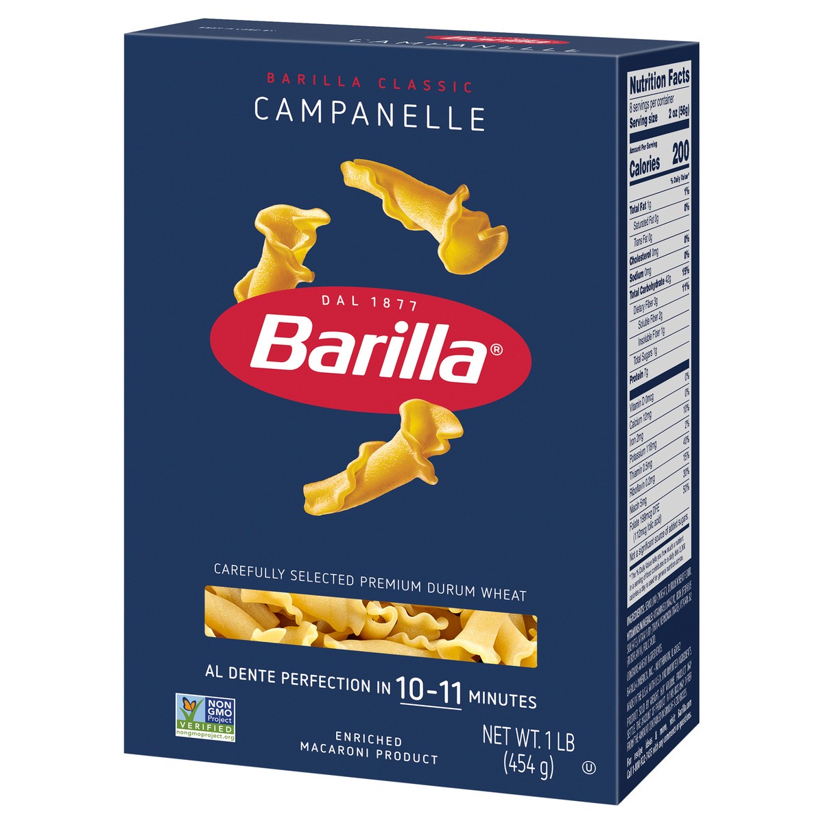 Barilla Campanelle pasta is a delicate, but sturdy pasta shape. The fluted, petal-like edges and a hollow center capture pasta sauce. Barilla Campanelle pasta is made with non-GMO ingredients.Barilla …