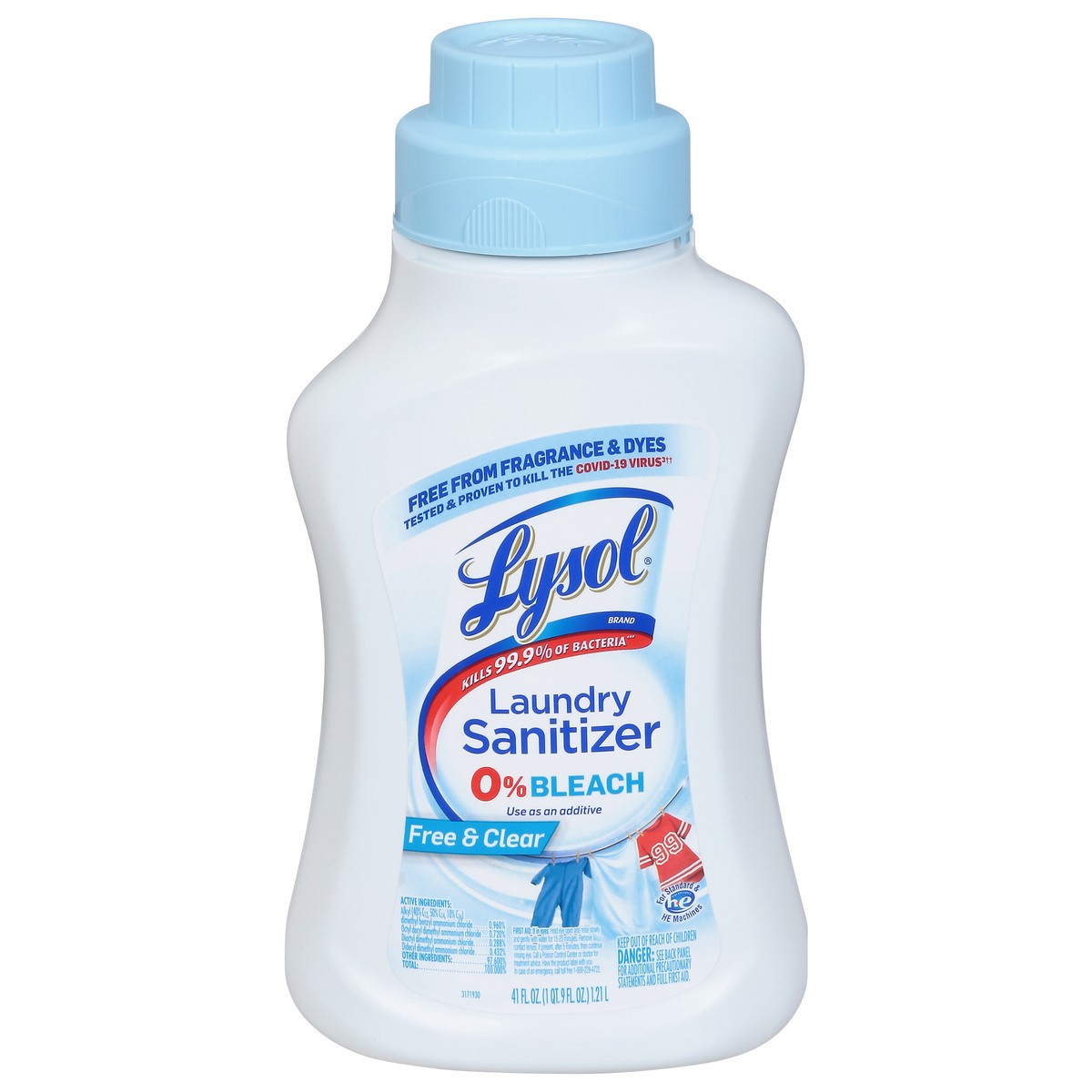 Free from fragrance & dyes. Tested & proven to kill the covid-19 virus (Kills sars-cov-2 in 5 minutes in pre-soak)(Pre-soak disinfection directions: Pour two capfuls each filled to line 1 into 1 gallo…