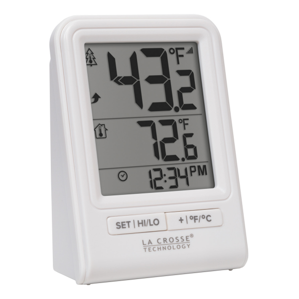 La Crosse Technology's Wireless Thermometer displays indoor and outdoor temperature as well as time. It's compact sleek design makes it perfect for any room in your home.