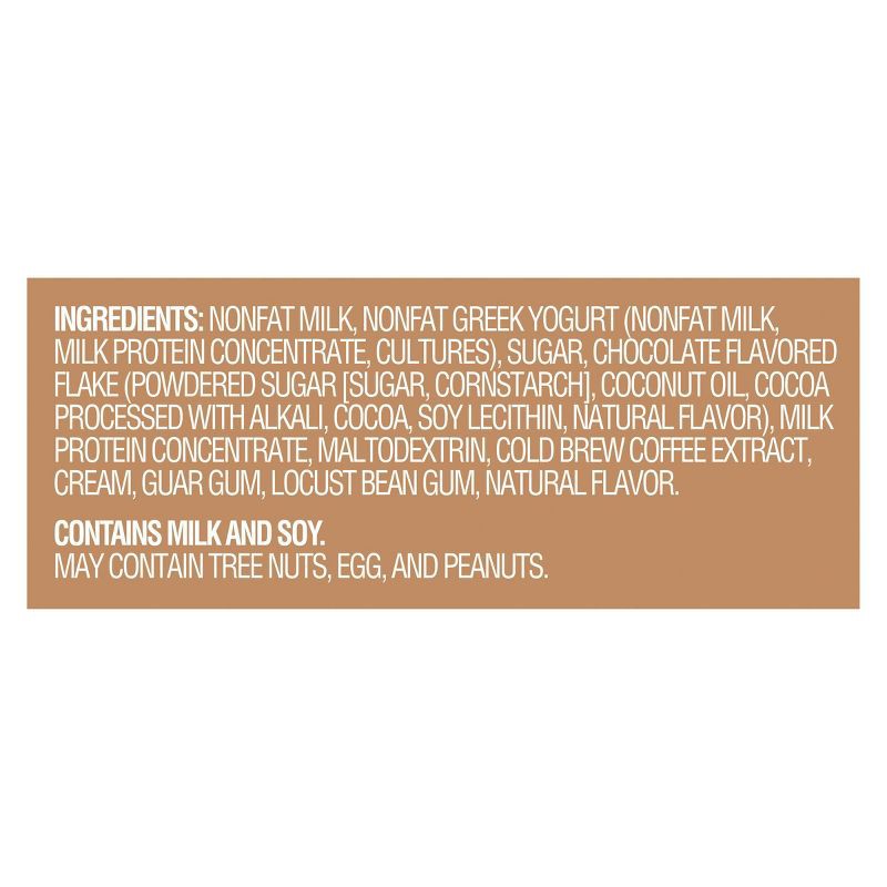 Nonfat Milk, Nonfat Greek Yogurt (Nonfat Milk, Milk Protein Concentrate, Cultures), Sugar, Chocolate Flavored Flake (Powdered Sugar [Sugar, Cornstarch], Coconut Oil, Cocoa Processed with Alkali, Cocoa…