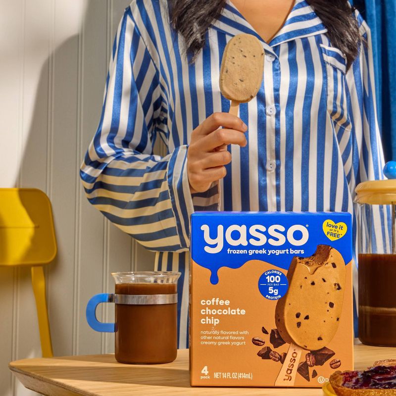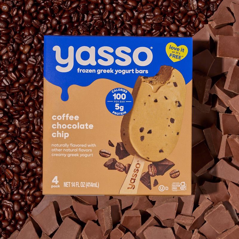 - Yasso Coffee Chocolate Chip Bars are made with ridiculously creamy coffee flavored Greek yogurt and chocolatey chips