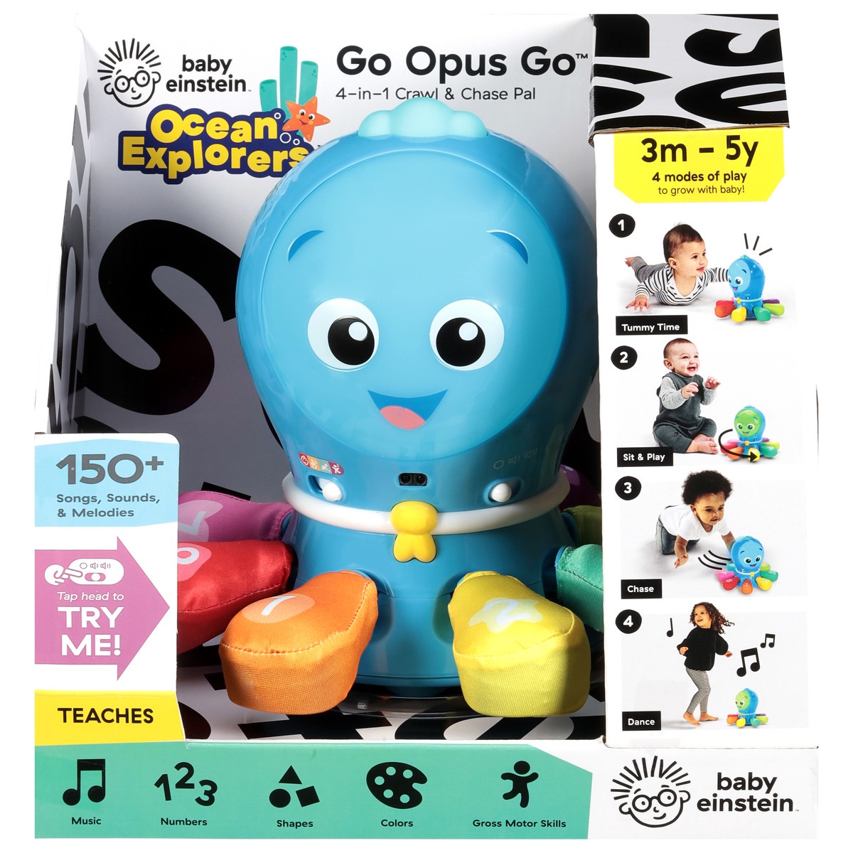 - The Baby Einstein Ocean Explorers Go Opus Go 4-in-1 toy features 4 modes - Tummy Time