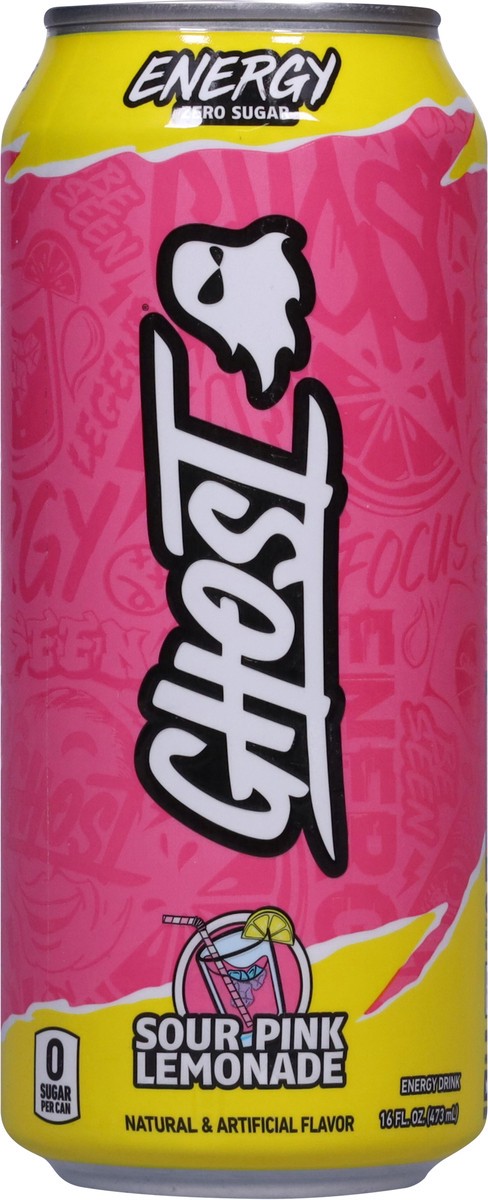 Ghost Zero Sugar Energy Drink, Sour Pink Lemonade, 16 fl oz Can