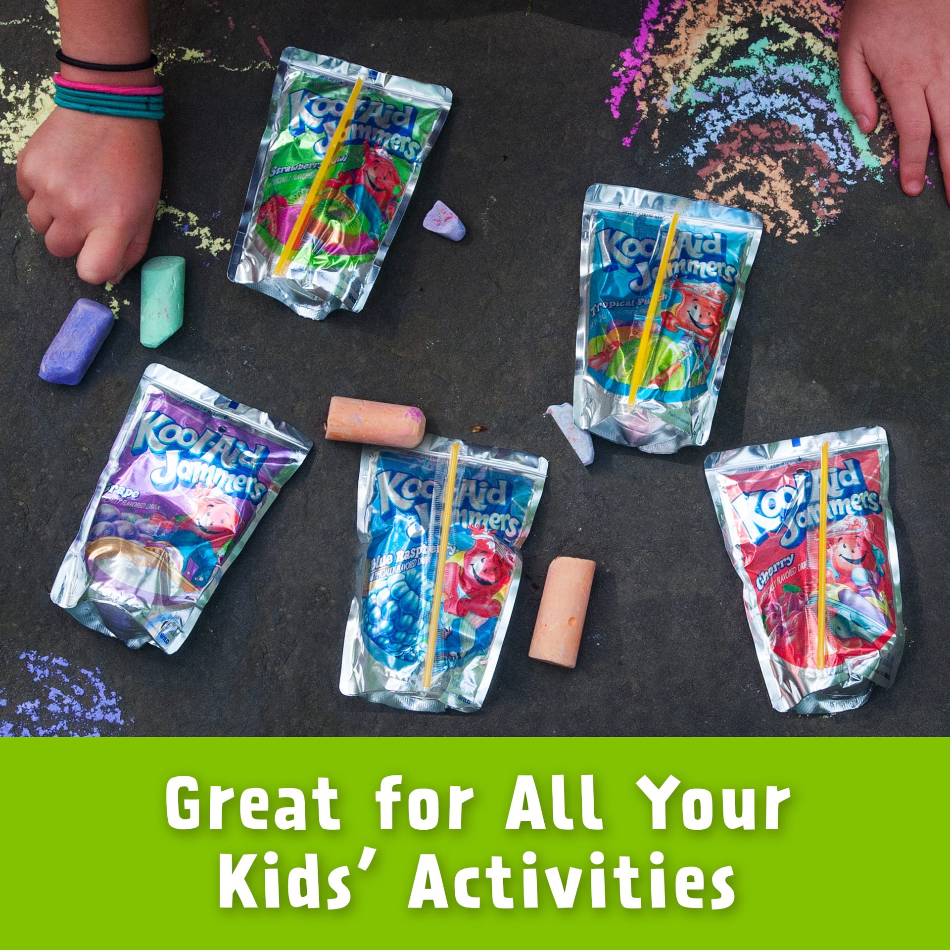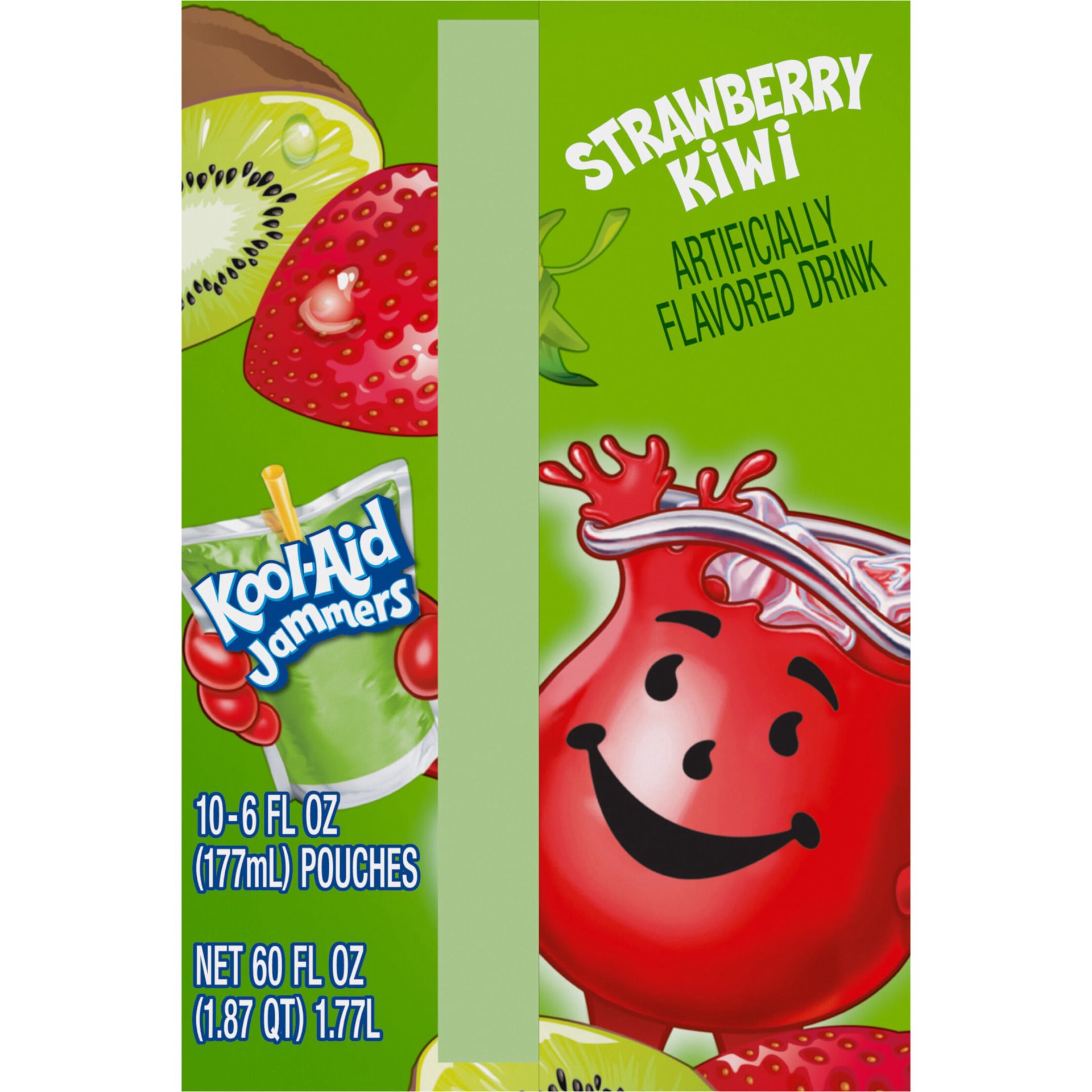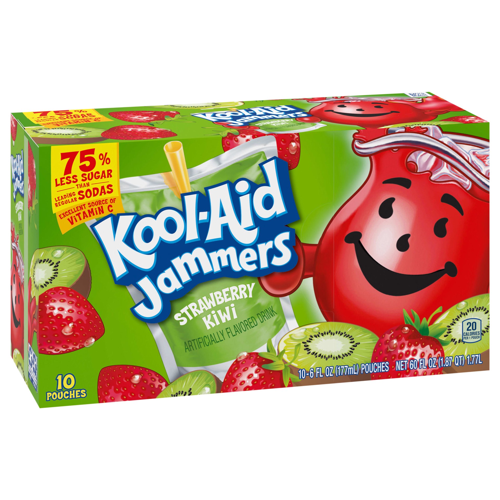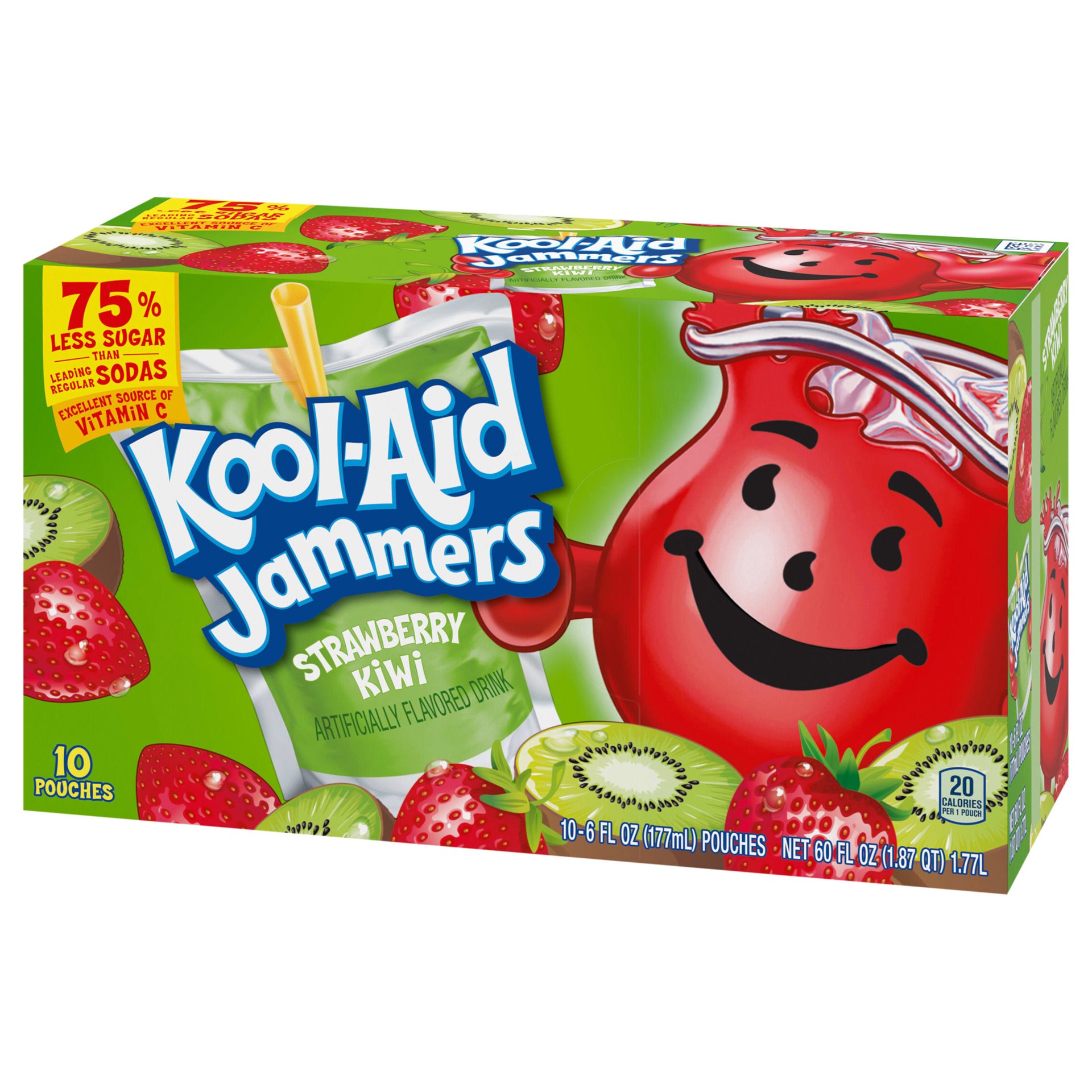 Kool-Aid Jammers Artificially Flavored Strawberry Kiwi Drink Pouches deliver fun with a sweet blend of strawberry and kiwi flavors. Our delicious kids drink contains 75% less sugar than leading regula…