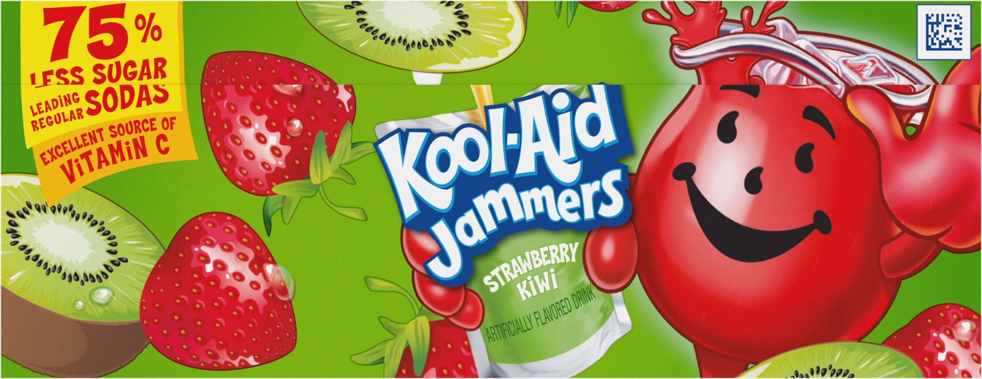Kool-Aid Jammers Artificially Flavored Strawberry Kiwi Drink Pouches deliver fun with a sweet blend of strawberry and kiwi flavors. Our delicious kids drink contains 75% less sugar than leading regula…