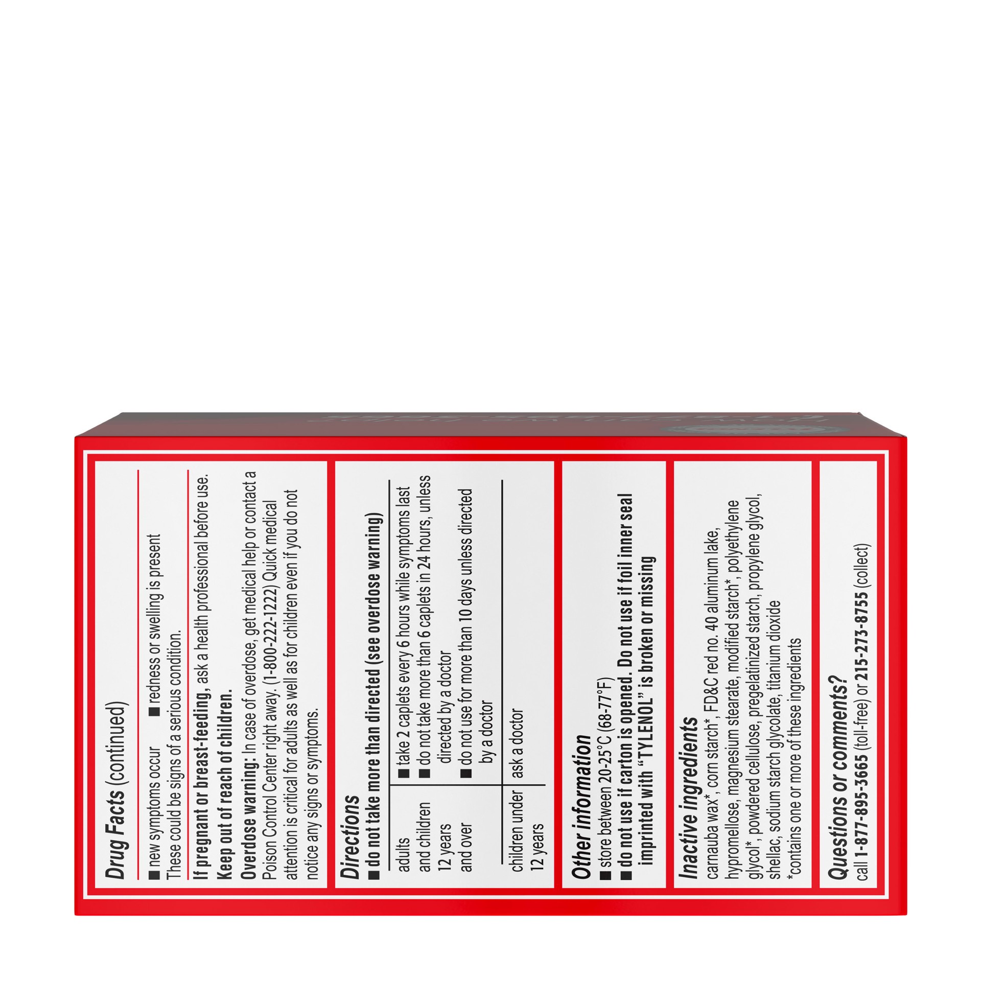 Active ingredient (in each caplet) (): Acetaminophen 500 mg (Pain reliever/fever reducer)